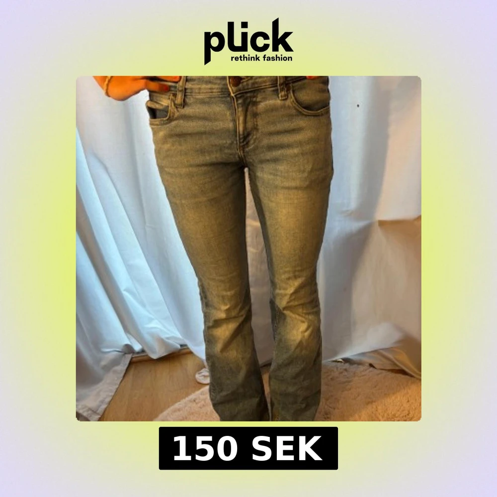 Snygga blå jeans från Lee med bootcut-modell och klassisk femficksdesign. Jeansen är mid waist och är tillverkade i mjukt denimtyg med lätt tvättad look. Perfekta för dig som gillar en tidlös och avslappnad stil. Jeansen har ett litet hål i skrevet, pris kan diskuteras.