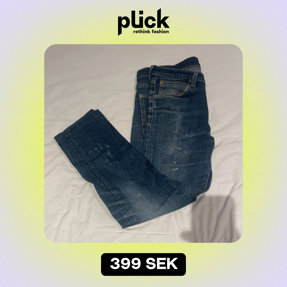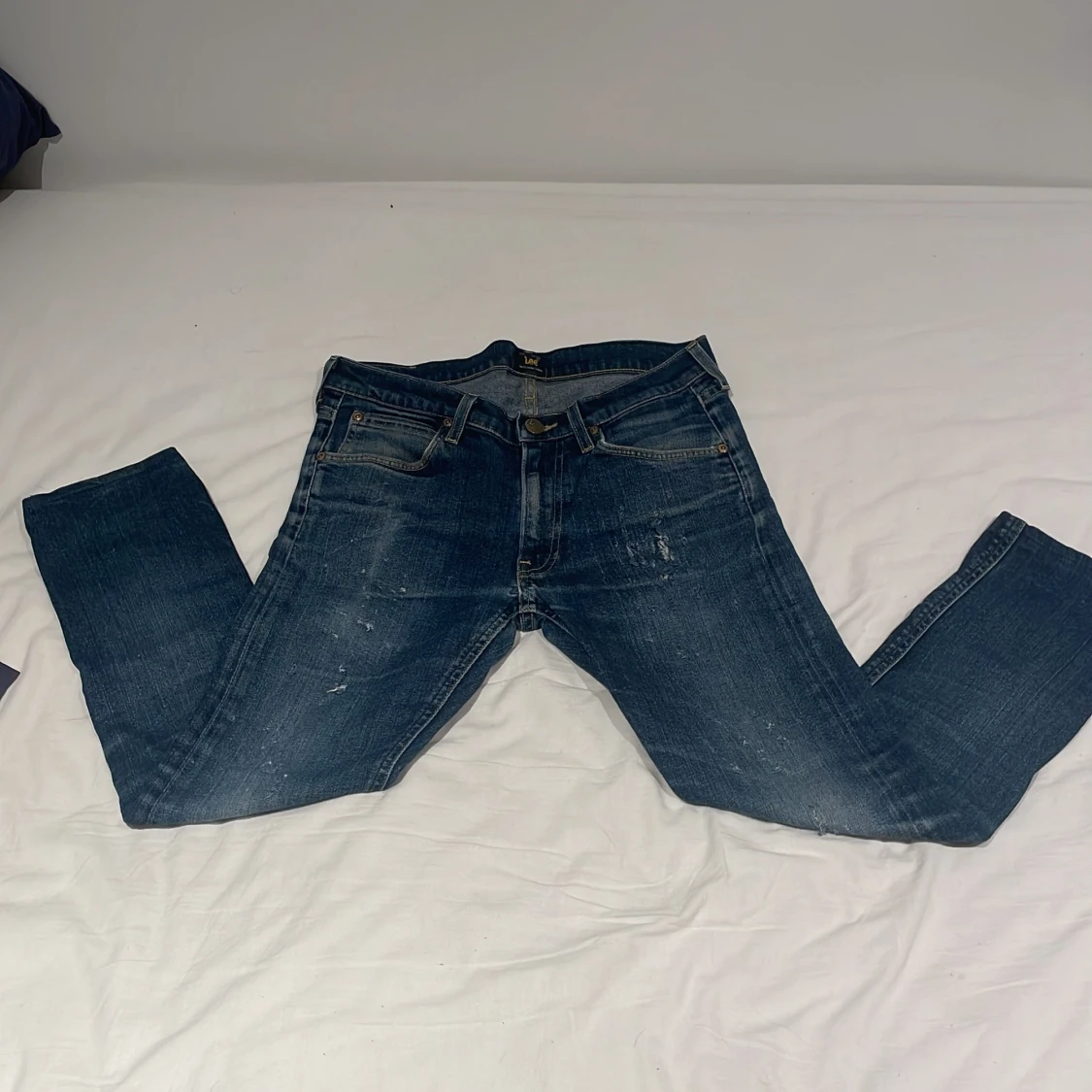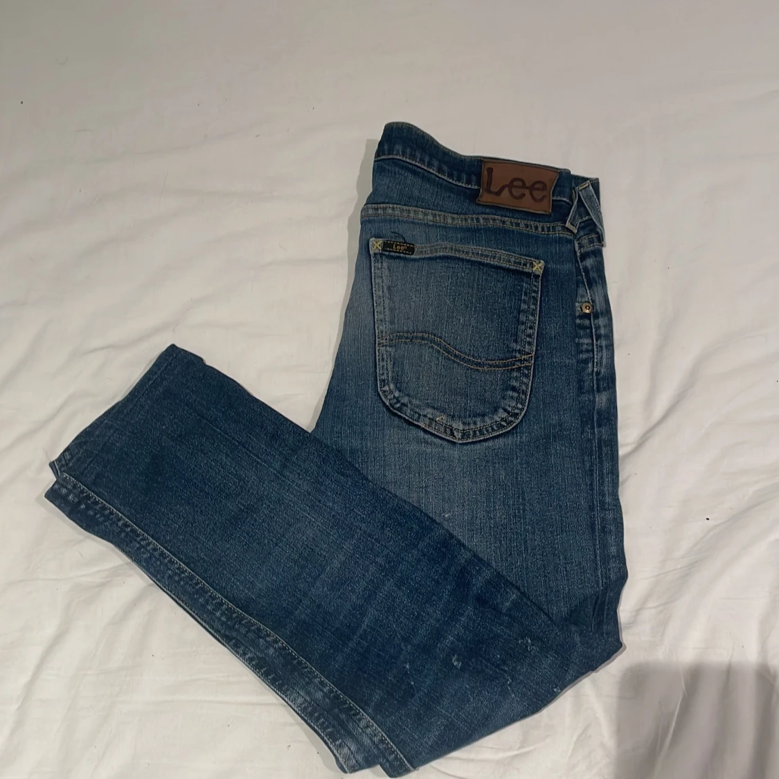 Säljer ett par snygga blå jeans från Lee i bra skick. De har en klassisk femficksdesign och en bekväm passform. Perfekta för vardagsbruk och kan enkelt matchas med olika outfits. Det är också slitningar på jeansen. Passar både till skolan,fritiden och fest🍾. Storleken är 29/30