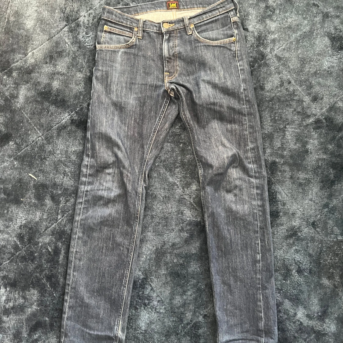 Säljer ett par mörkblå Lee jeans som passar storlek 30:32. Är Slim fit men mer åt straight hållet. Hör av er för fler frågor. Mvh Charlie
