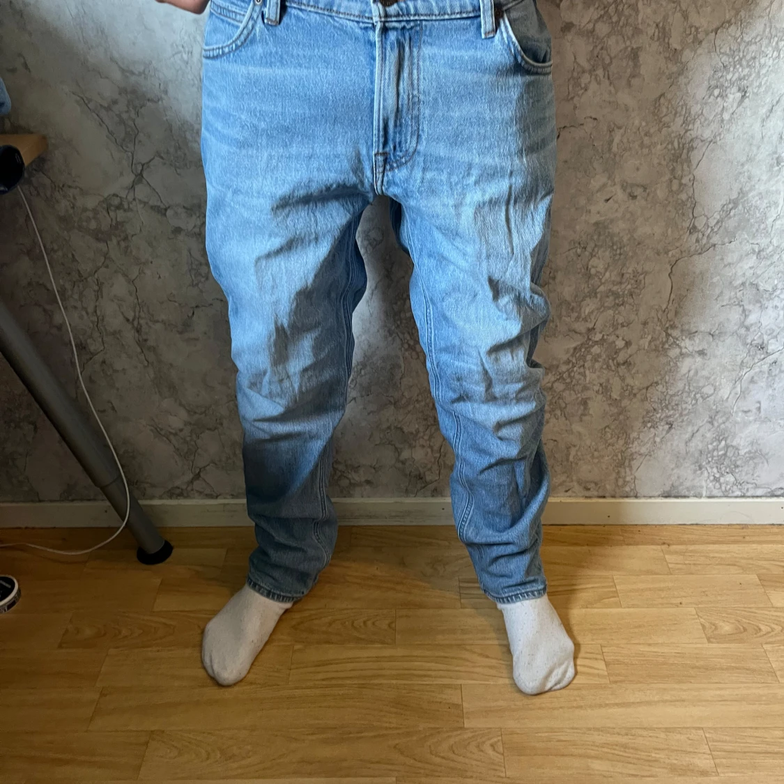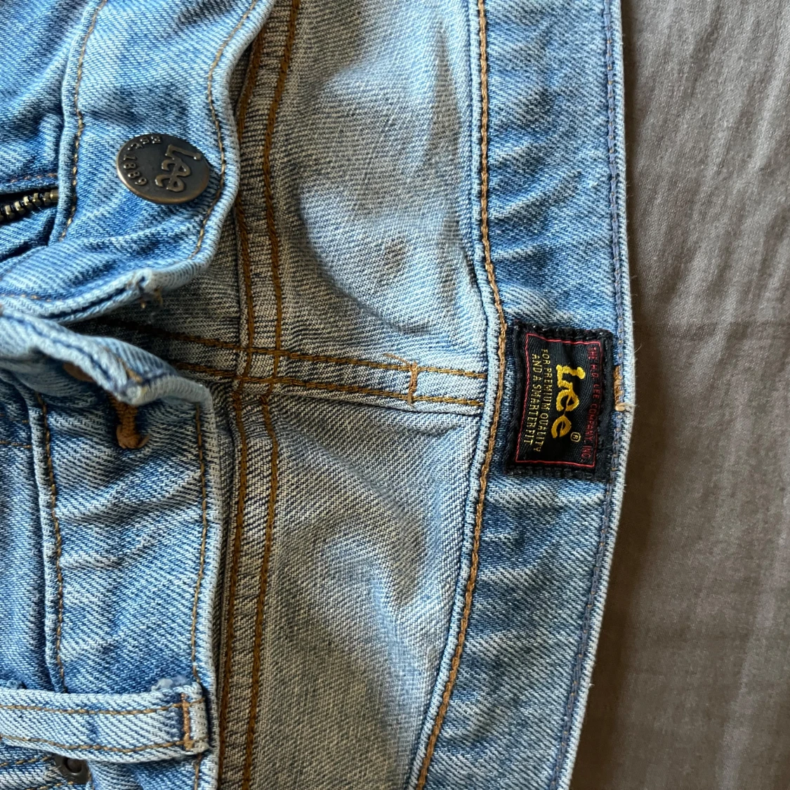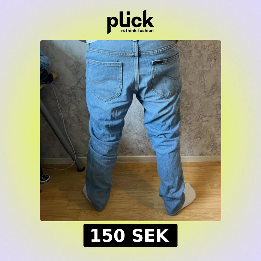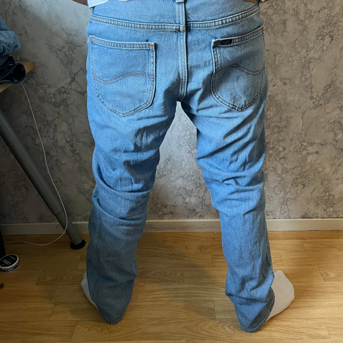 Säljer ett par klassiska ljusblå jeans från Lee i rak modell. Jeansen har fem fickor, snygga kontrastsömmar och Lee-logga på bakfickan. Tillverkade i slitstarkt bomullsjeans, perfekta för dig som gillar en tidlös look.