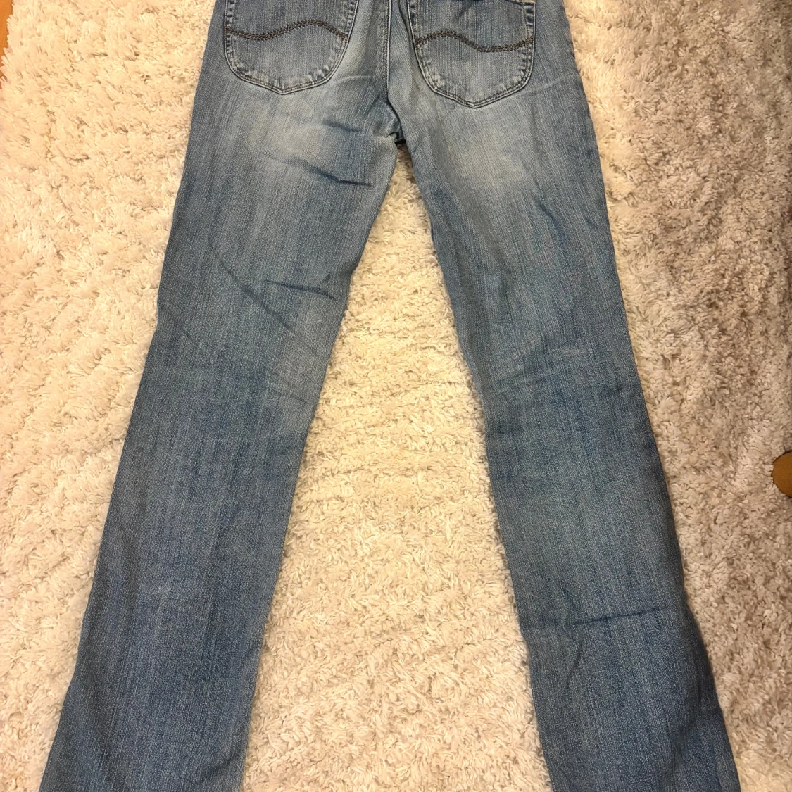 Säljer ett par ljusblå jeans från Lee med klassisk bootcut-passform. Jeansen har fem fickor, snygga sömmar på bakfickorna och Lee-logga på linningen. Materialet är 98,5% bomull och 1,5% elastan för lite stretch. Dragkedja och knapp framtill. Pris går absolut att diskutera!