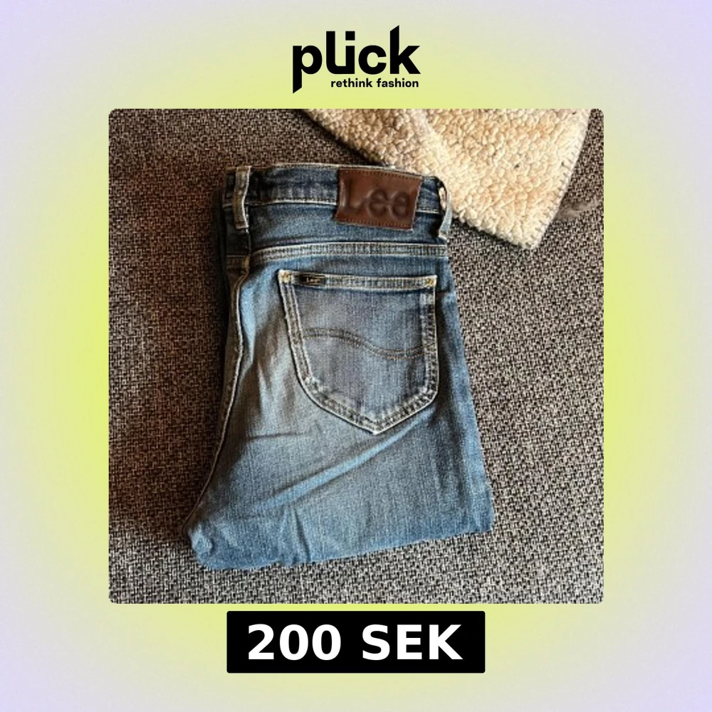 Säljer ett par klassiska blå jeans från Lee. De har en normal passform med fem fickor och en snygg slitning på baksidan. Perfekta för en avslappnad stil. W31 L34
