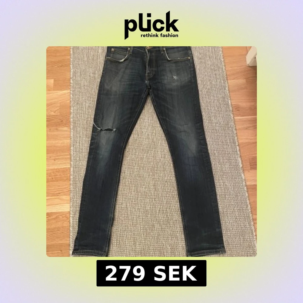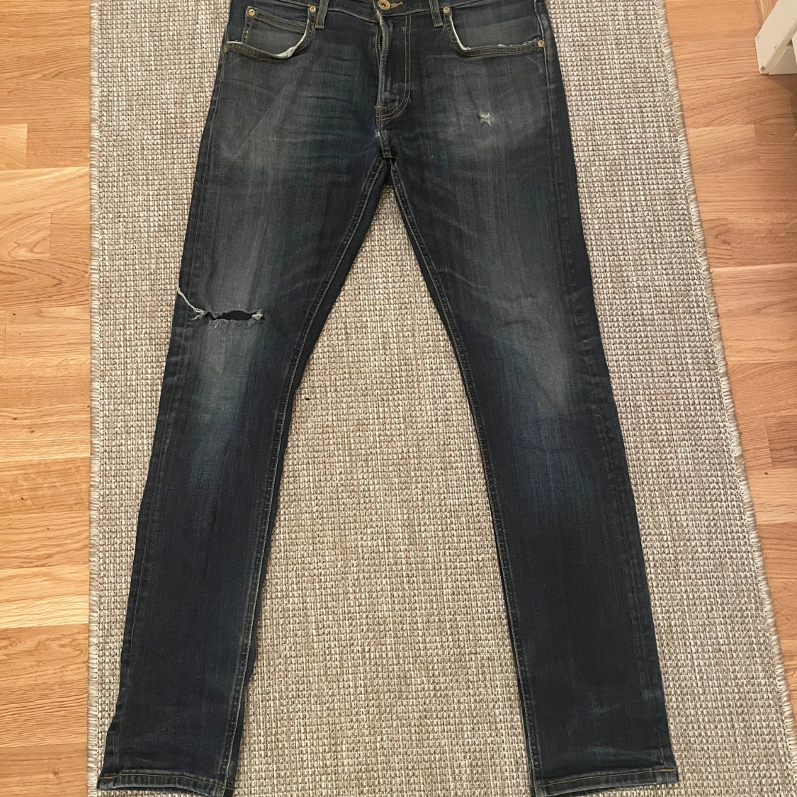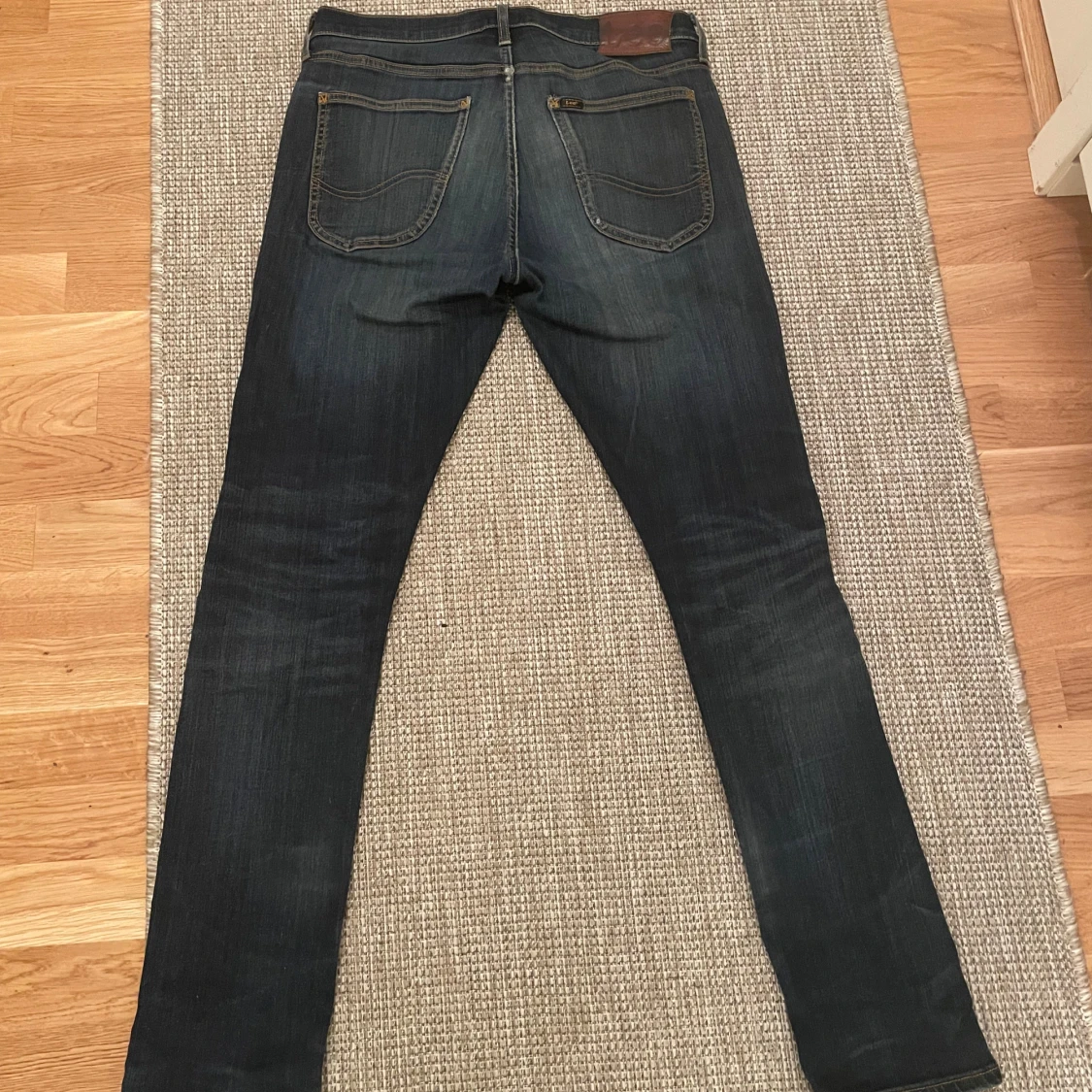 Snygga mörkblå skinny jeans från Lee med slitningar och en trasig detalj på vänster knä. Klassisk femficksmodell med gylf och knapp, samt Lee-lapp bak i midjan. Jeansen har en smal passform och är tillverkade i stretchig denim för extra komfort.