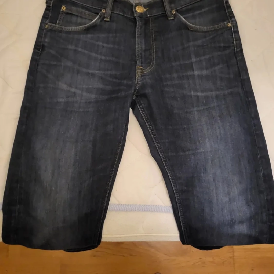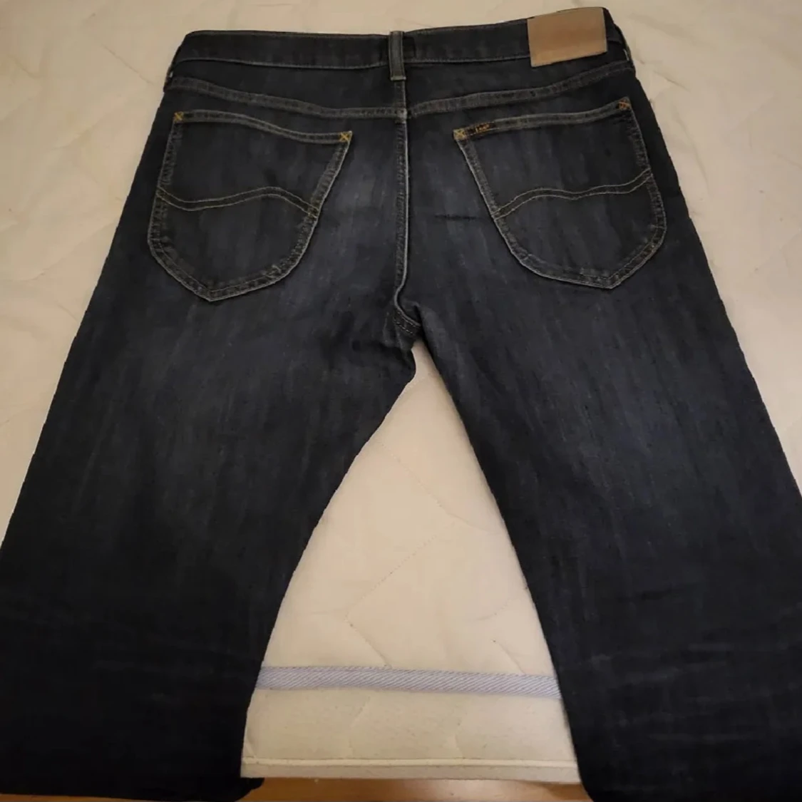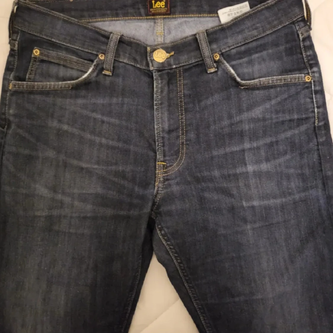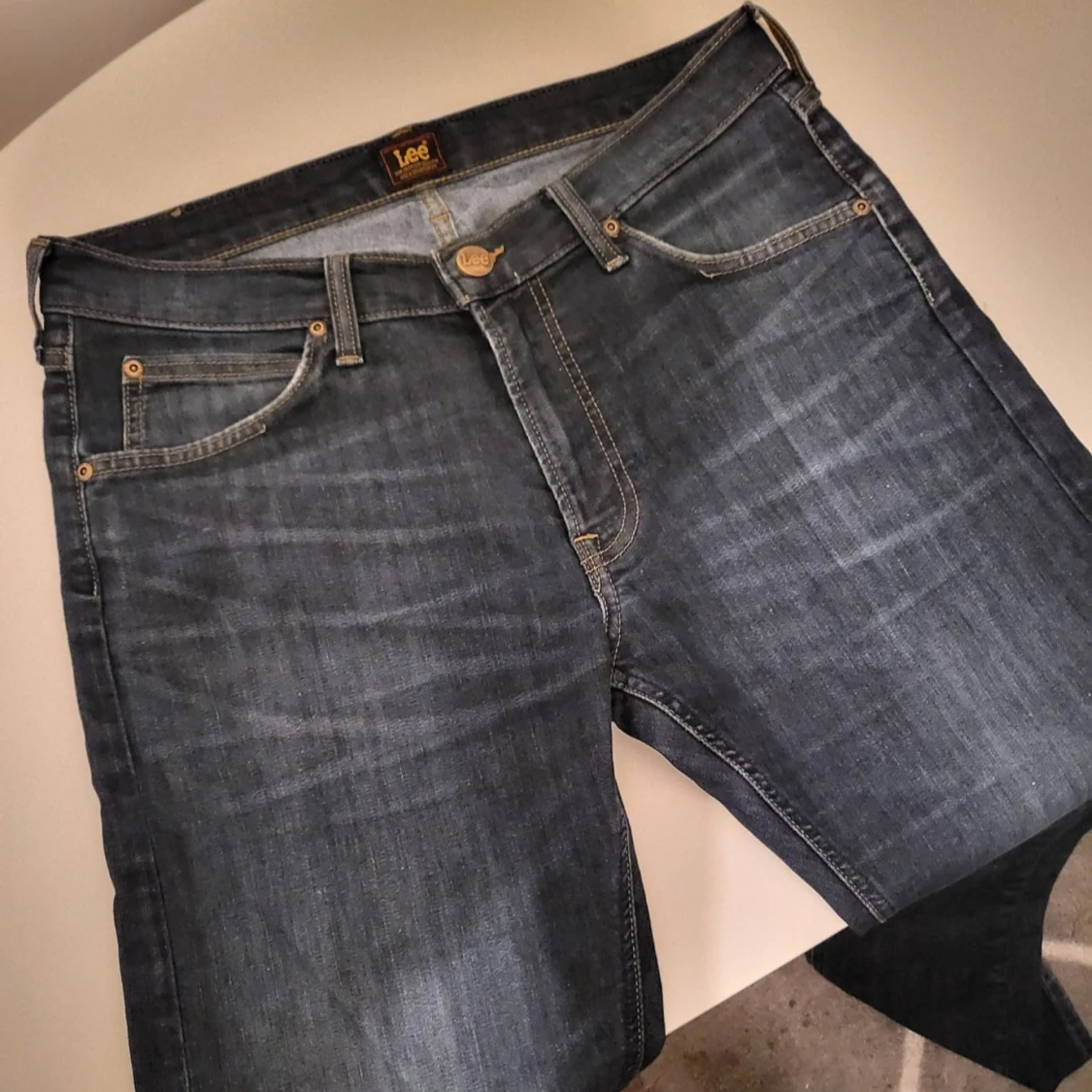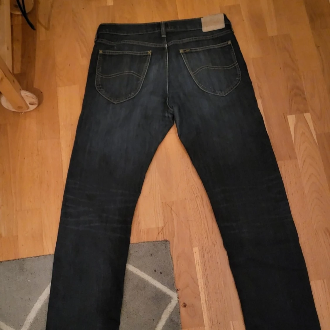 Snygga mörkblå jeans från Lee med klassisk femficksdesign och raka ben. Mycket bra skick knappt använd dom