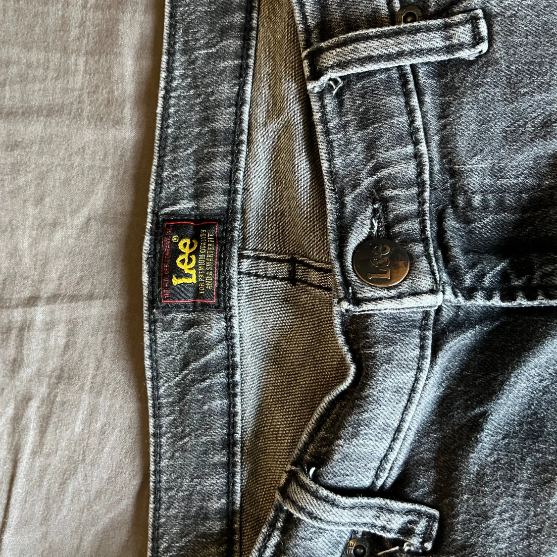 Säljer ett par grå jeans från Lee med klassisk femficksdesign och raka ben. Jeansen har tydliga Lee-detaljer på knapp och bakficka, samt en snygg tvättad finish. Materialet är robust denim som ger en cool vintagekänsla. Hör av dig vid minsta fundering pris ej hugget i sten! W32 L30