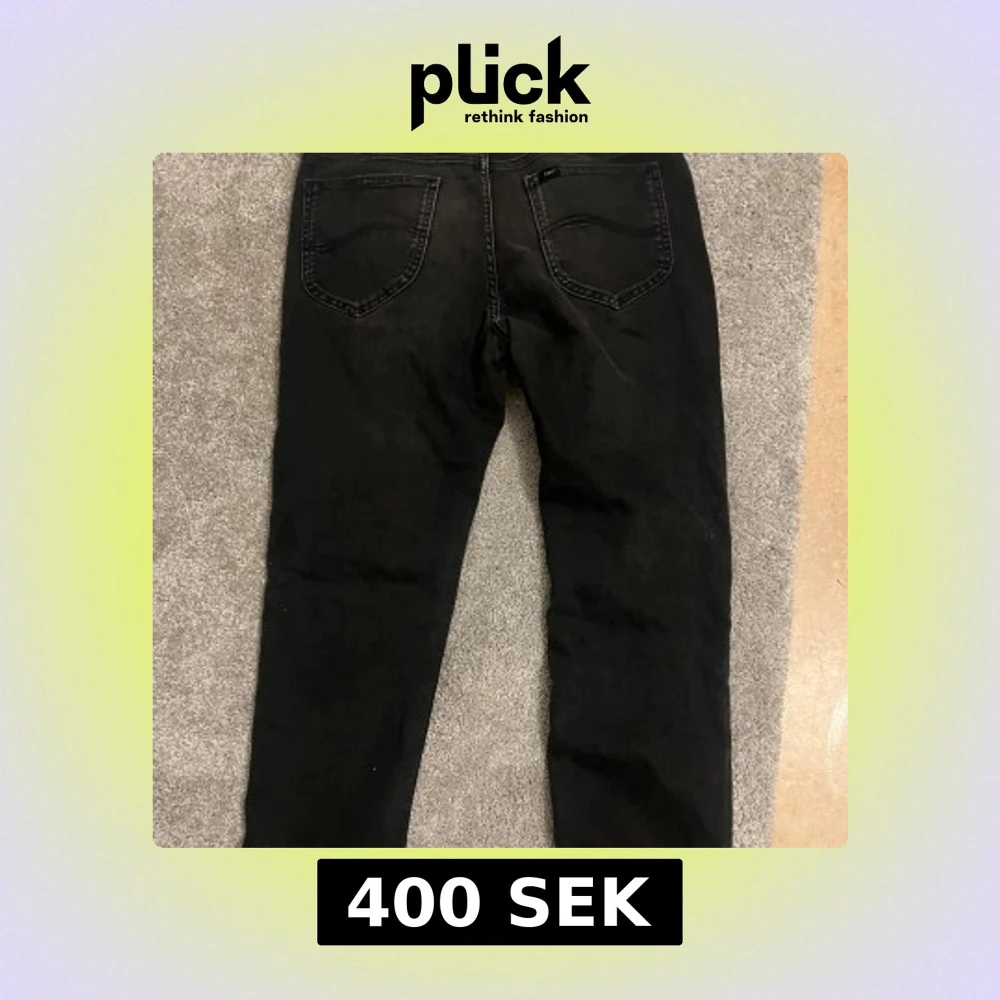 Säljer ett par svarta Lee jeans med klassisk femficksdesign och smal passform. Jeansen har en snygg mörk ton och är tillverkade i mjukt jeansmaterial med stretch för extra komfort. Perfekta för dig som gillar en clean och stilren look.