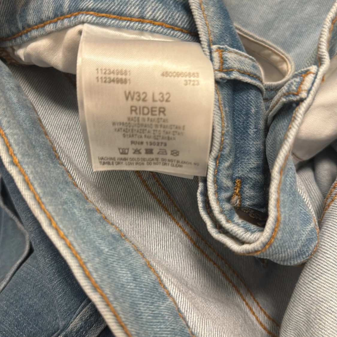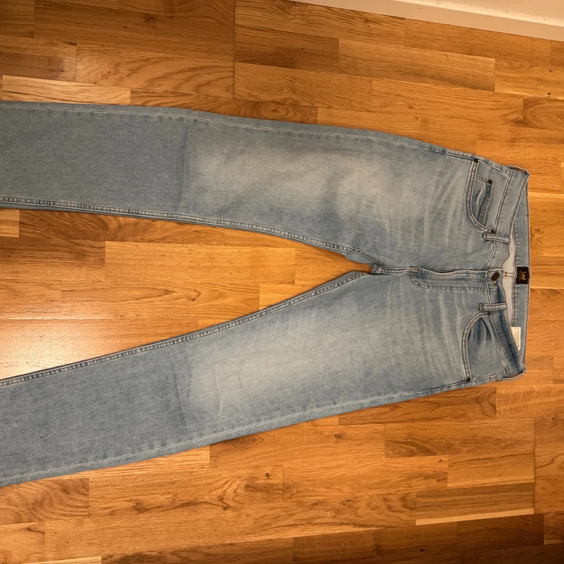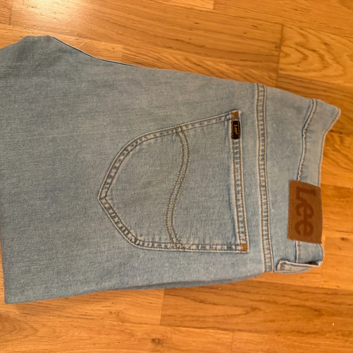 Säljer ett par klassiska Lee Rider jeans i ljusblå tvätt. Jeansen har raka ben, fem fickor och Lee-logga på bakfickan. Tillverkade i bomull med snygga kontrastsömmar och normal passform. Perfekta för en avslappnad och stilren look. Väldigt bra skick köpt från Åhléns för 800kr använt bara en gång!! Pris 349kr