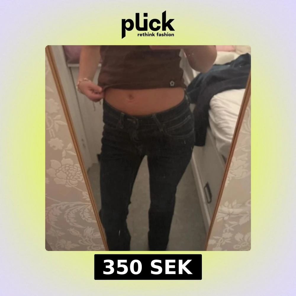 Säljer ett par mörkblå jeans från Lee med klassisk bootcut-passform och låg midja. Jeansen har tydliga kontrastsömmar, fem fickor och Lee-lapp bak i midjan. Perfekta för dig som gillar en tidlös och snygg look.