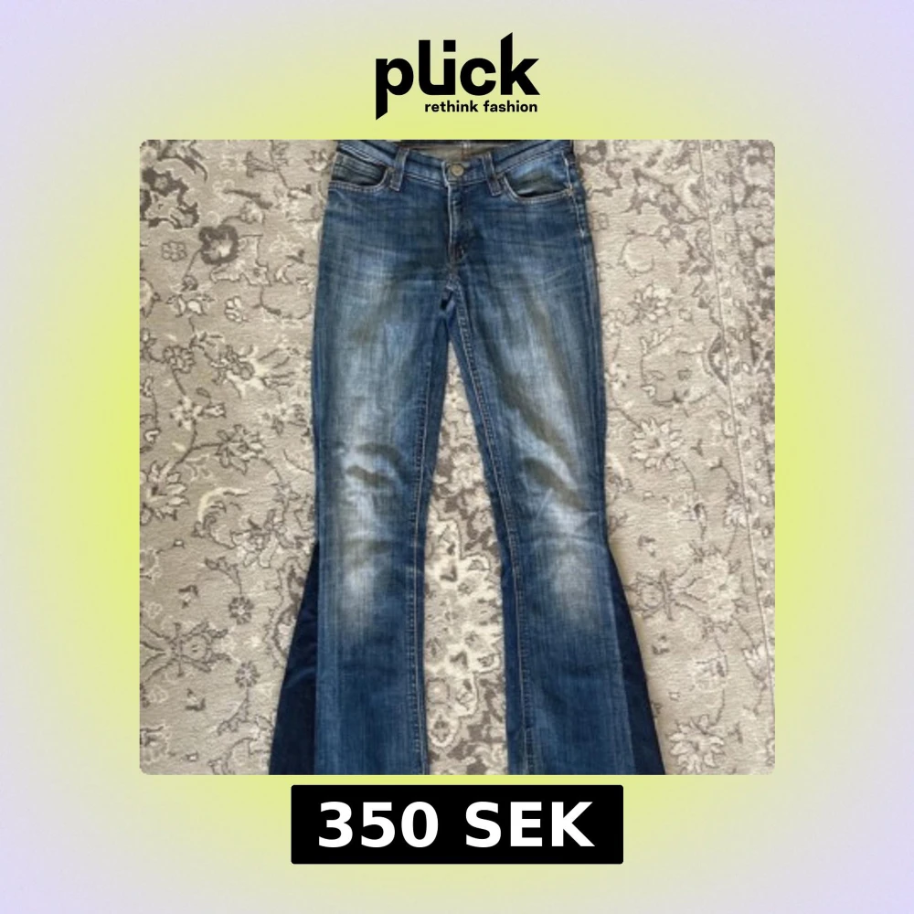 Säljer ett par klassiska blå bootcut jeans från Lee med snygga utsvängda ben. Jeansen är tillverkade i bomull med lite stretch för extra komfort. Perfekta för dig som gillar retrostil och vill ha ett par jeans som sticker ut.
