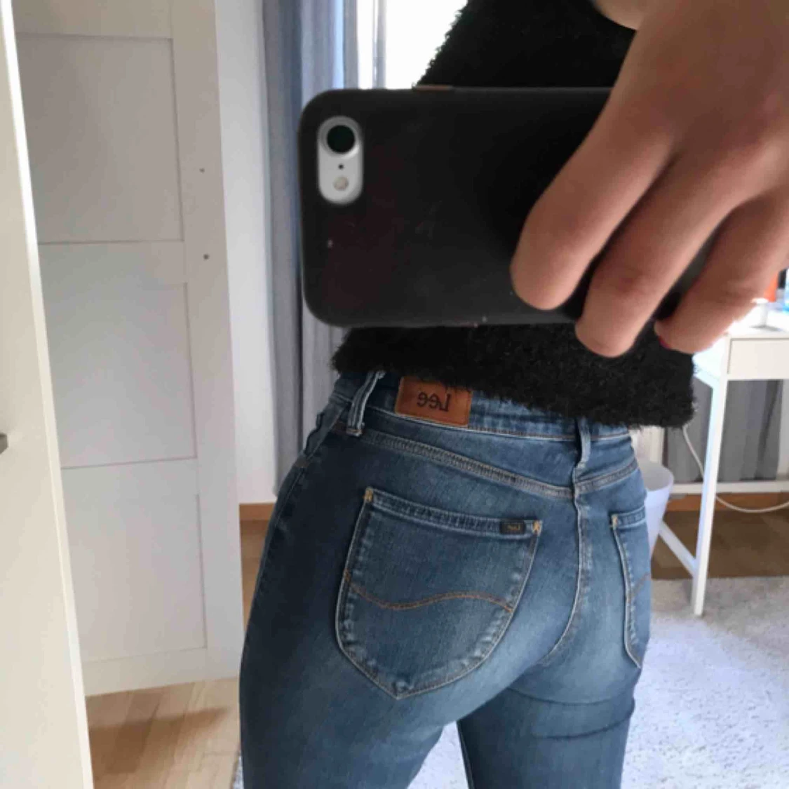 Superfina tighta jeans från Lee. Fint skick och sitter toppen på mig som i vanliga fall är en 26 (dock är det väldigt stretchiga) :)