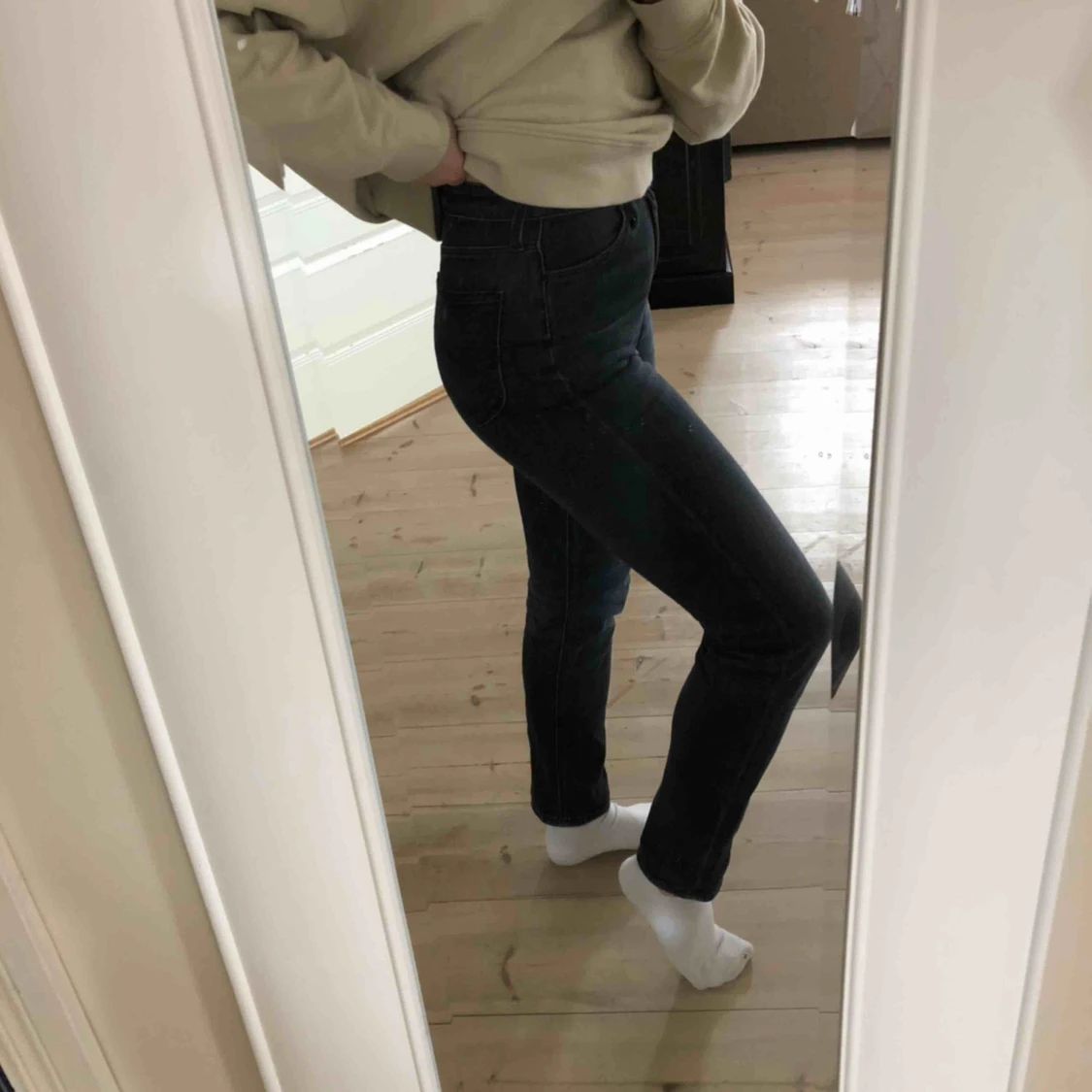 Jag säljer mina super snygga Lee jeans. Nypris 699kr, modell mom jeans straight. Lite för små för mig som har M men funkar.