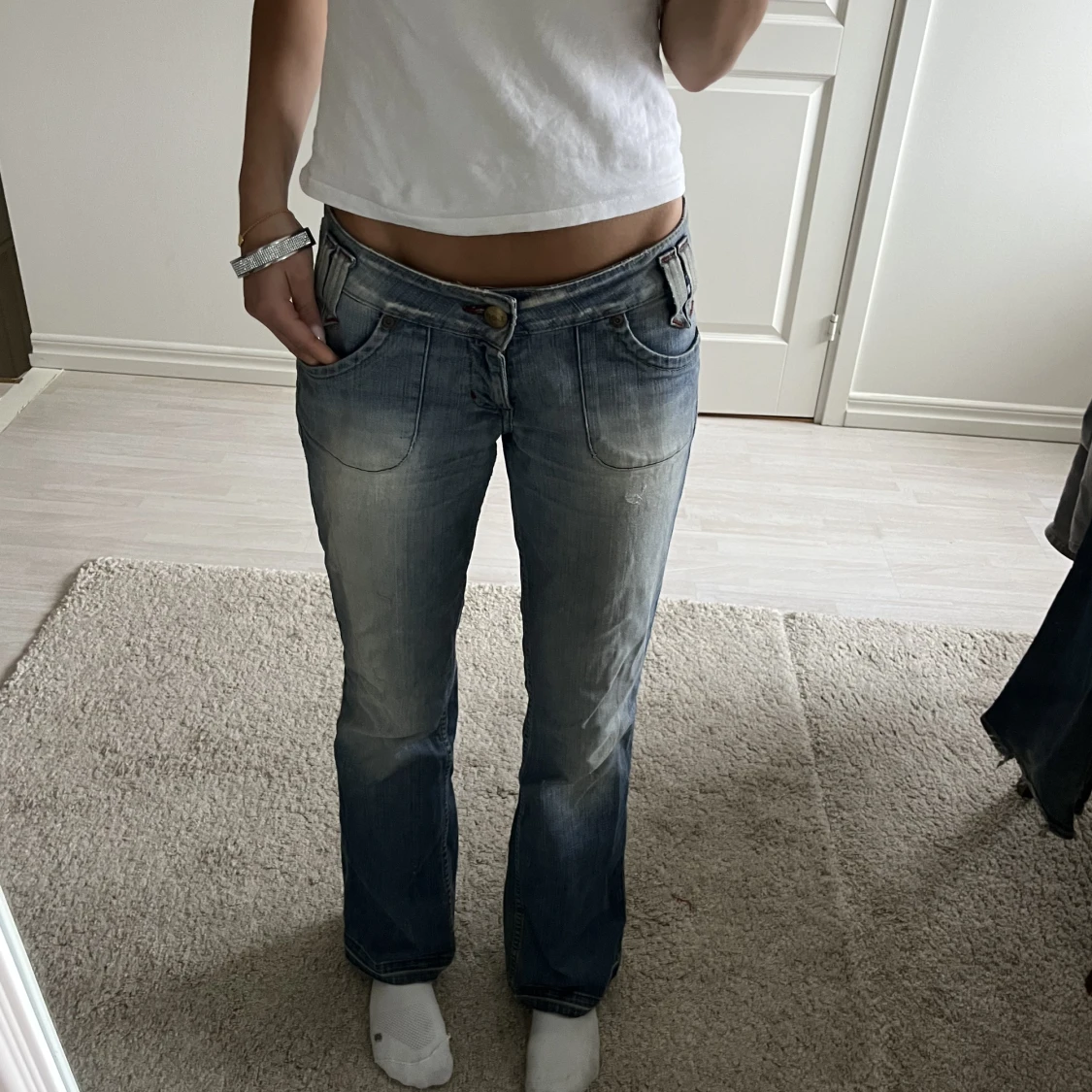 Säljer då de blivit lite stora i midjan på mig :(, väldigt långa i benen! Innerbenslängd 84 cm och midjemåttet tvärsöver är 41 cm. Byxorna är uppsprättade längst ner därför är det lite ”slitage”✨✨ Pris kan diskuteras 💕