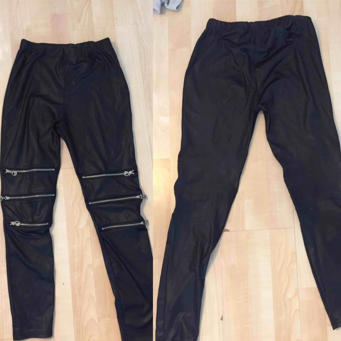 Svarta leggings/byxor med dragkedjor, stretch, onesize. Använda ett par gånger, bra skick!