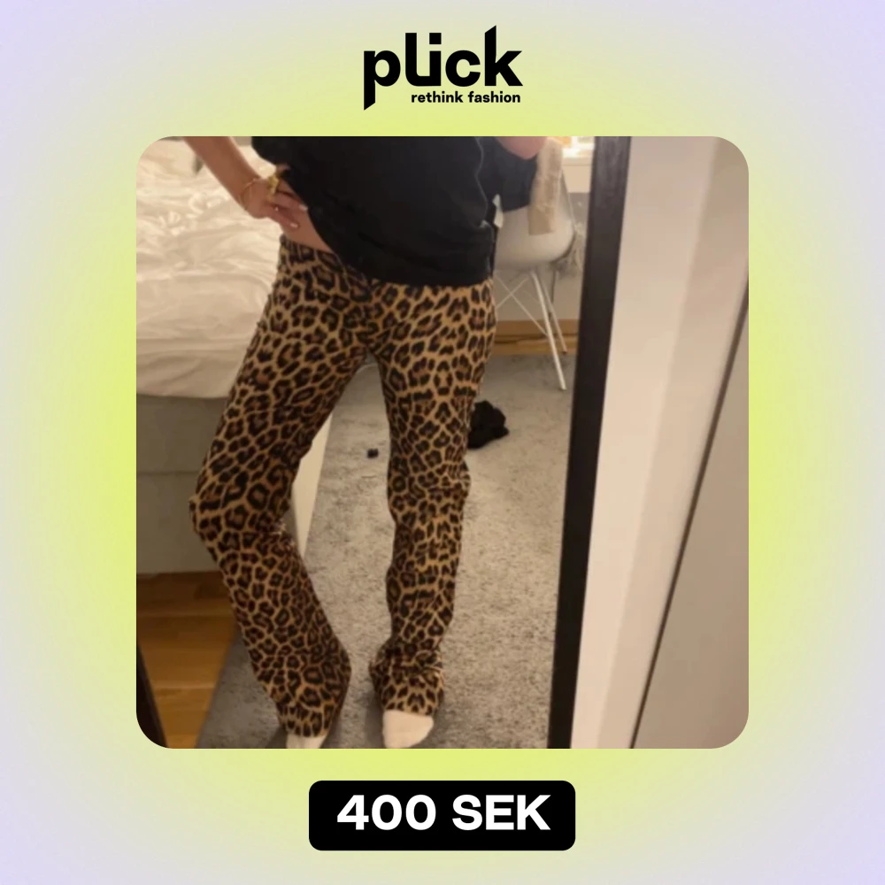 Sjukt snygga leopard byxor. Omsydda så dom ska vara lågmidjade. Storlek M men skulle mer säga att dom är xs/s