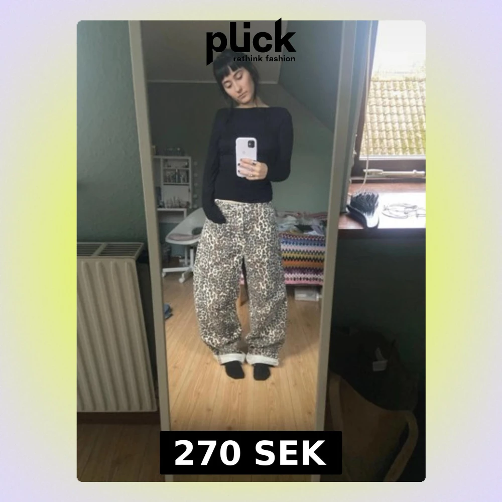 Snygga, använt ett par gånger bara. De är baggy men fortfarande rätt och bra storlek i midja vilket jag älskar. Storlek är 40 men passar mig som low waist (brukar ha s/m).