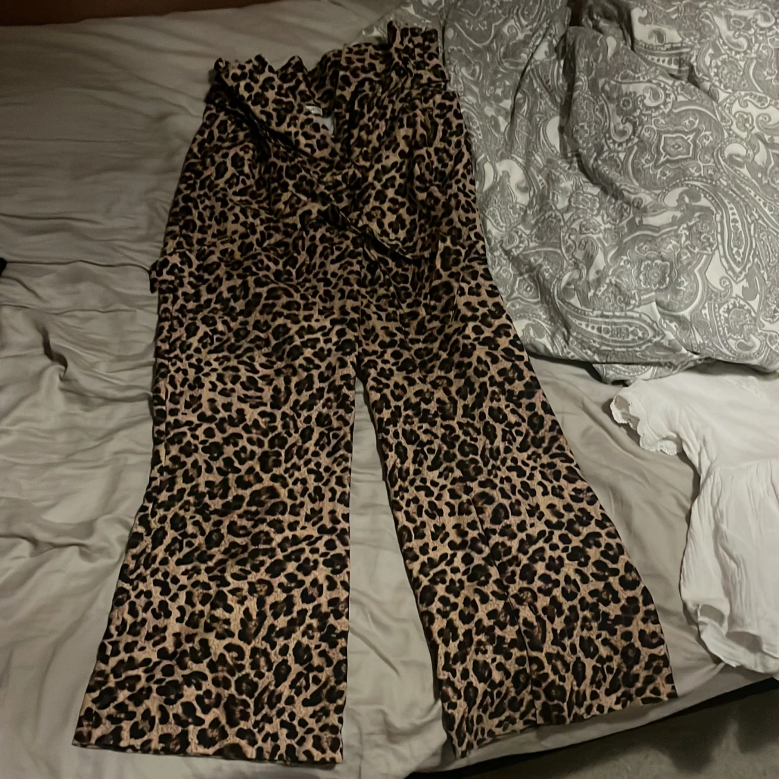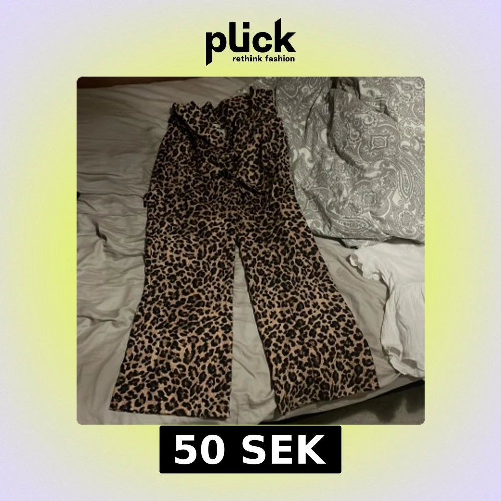 Säljer ett par snygga leopardmönstrade byxor från Chiquelle i storlek XS. Byxorna har vida ben och ett coolt heltryck i beige och svart. Perfekt för dig som vill sticka ut med ett djuriskt mönster och skön passform.
