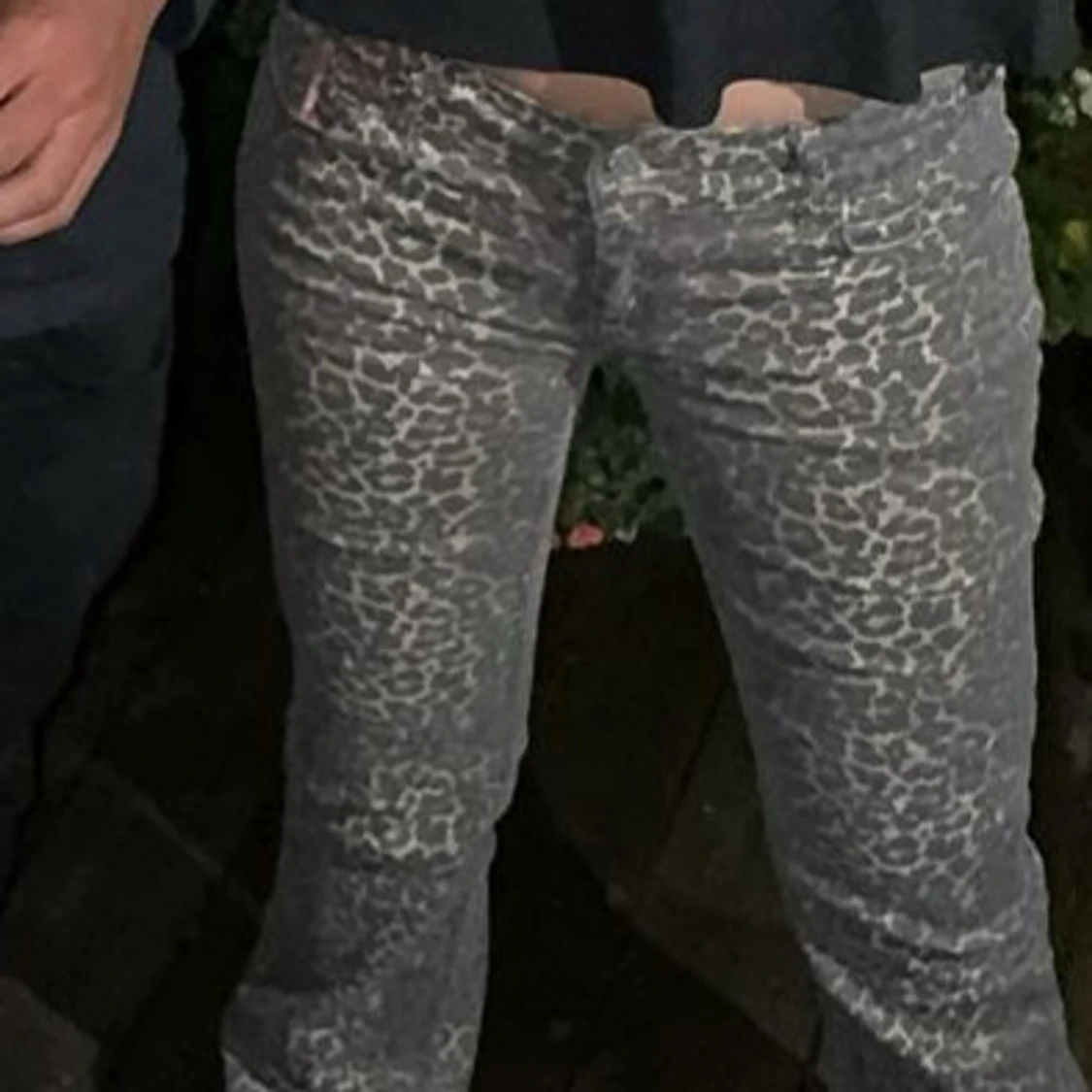 Snygga och populära leopardmönstrade byxor från Nelly med en tight passform och utsvängda ben. Perfekta för att ge din outfit en djärv touch. Byxorna har en knapp och dragkedja framtill. Sparsamt använda inga defekter!