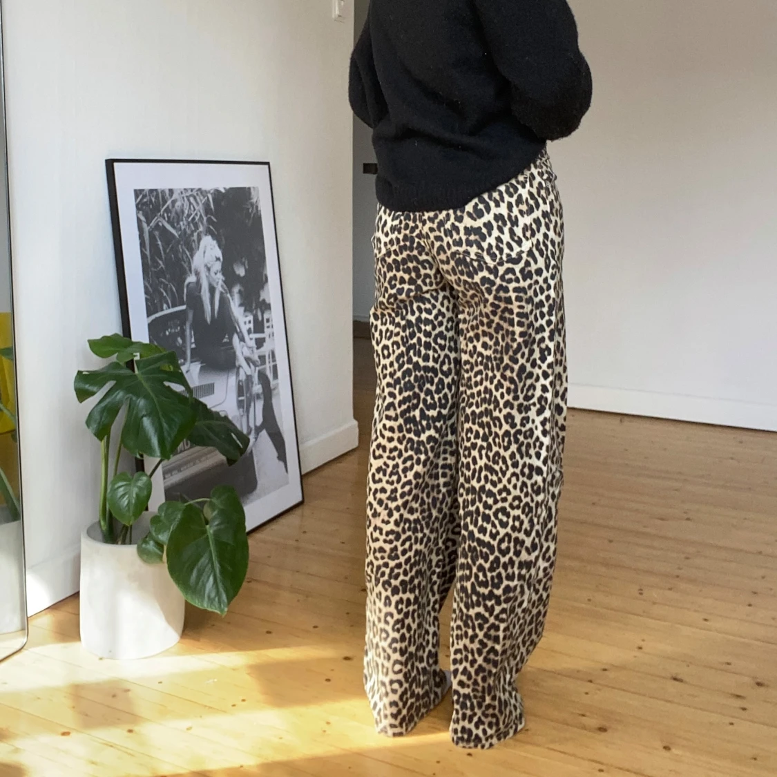 Snygga leopardmönstrade byxor med en loose passform. Byxorna har en hög midja och är tillverkade i ett bekvämt material. Långa och bra i modellen, jag är 173cm