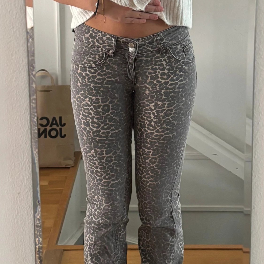 Leopardmönstrade lågmidjade bootcut jeans