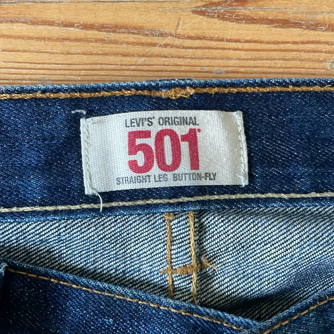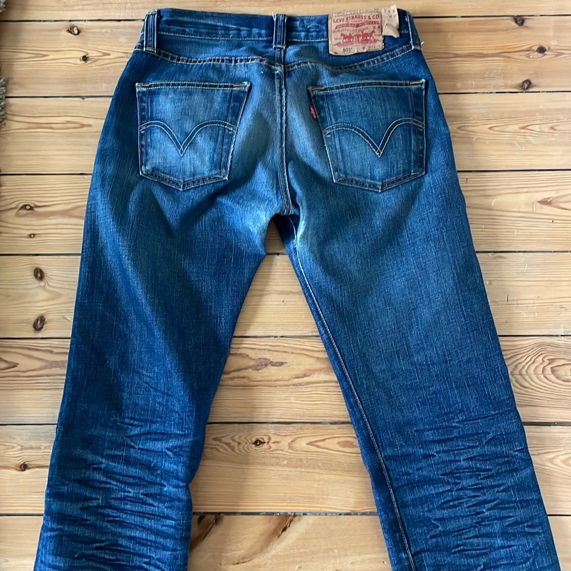 Klassiska blå Levi's 501 jeans med raka ben och knappgylf. Riktigt skön fade och tvätt Jeansen har fem fickor och tydliga slitningar för en autentisk look. Perfekta för dig som gillar tidlös denimstil.