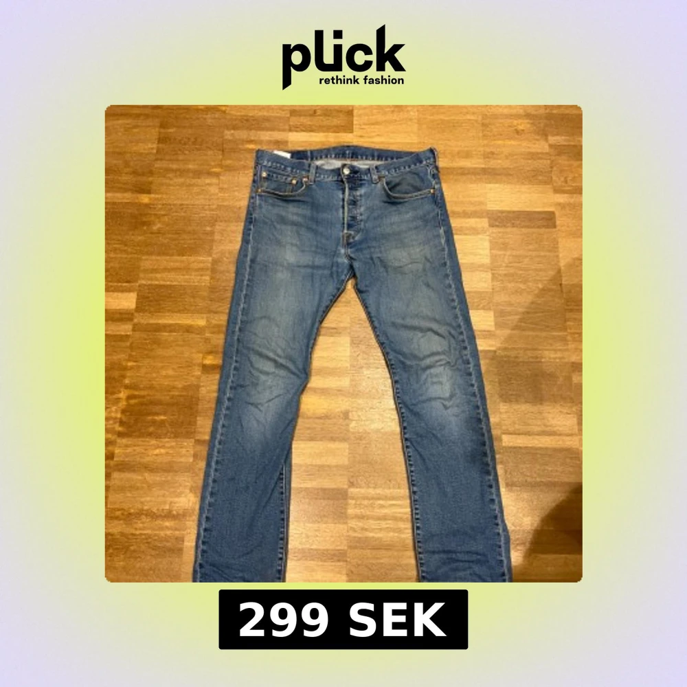 Klassiska Levi's 501 jeans i blå denim med raka ben och femficksmodell. Jeansen har knappgylf och den ikoniska läderpatchen bak i midjan. Perfekt för dig som gillar tidlös stil och vill ha ett par riktigt schyssta jeans.