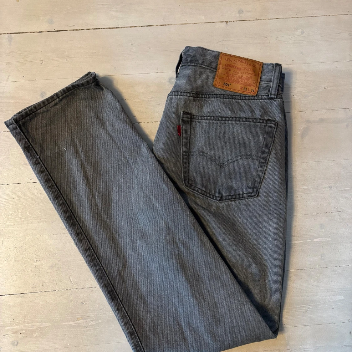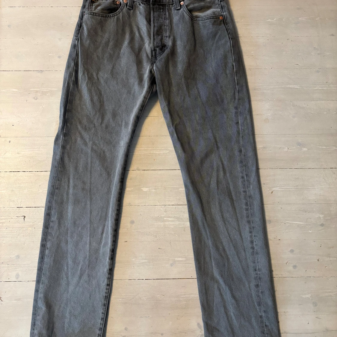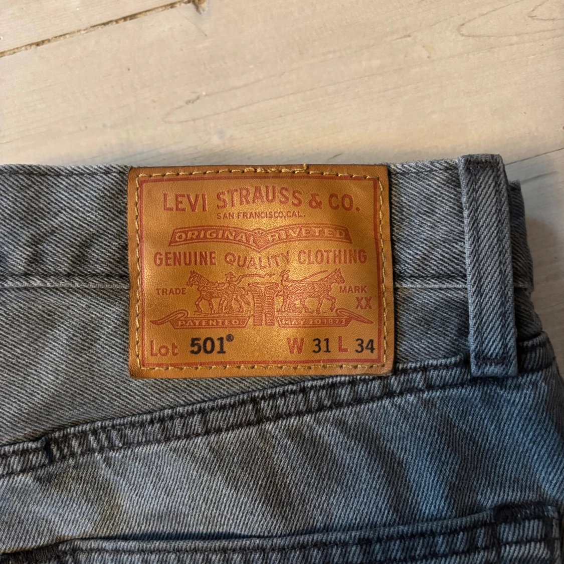 Grå Levi's 501 jeans med klassisk rak passform och femficksdesign. Jeansen är tillverkade i 97% bomull och 3% elastan för en skön känsla och lite stretch. Snyggt läderpatch bak i midjan och ikoniska Levi's-detaljer. Perfekta för en avslappnad stil.
