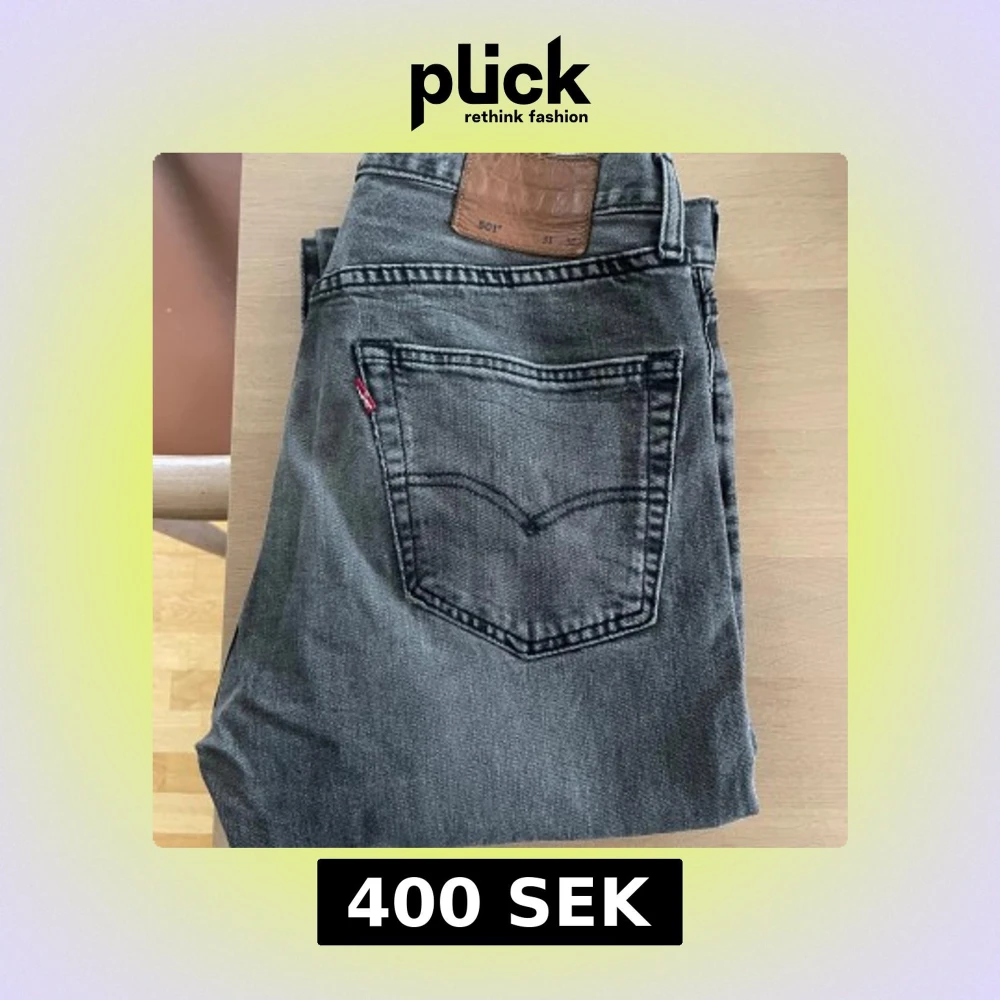Levis 501 i fint skick som är 31 i midjan. Längden är 74cm (grenen till botten) vilket motsvarar en längd på 29 i jeansspråk.
