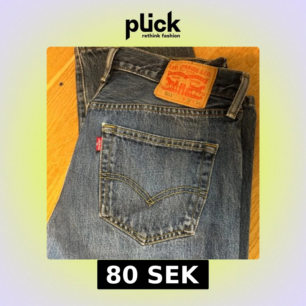 Klassiska blå Levi's 501 jeans med rak passform och hög midja. Sjukt snygga! Tyvärr har de ett litet hål vid skrevet (se bild 5). MEN det är inget man ser varken framifrån eller bakifrån. Jag är 171 cm!