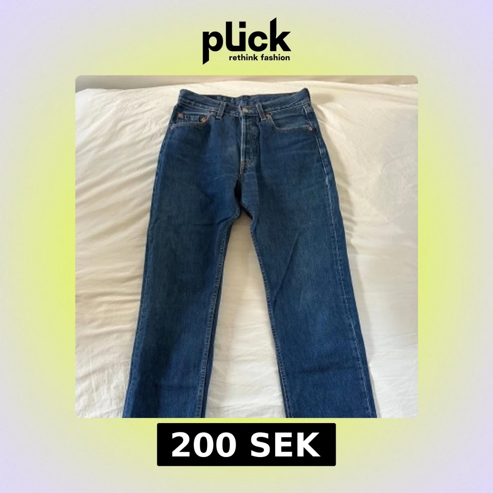 Klassiska blå Levi's 501 jeans i 100% bomull. De har en rak passform och midwaist design. Perfekta för en tidlös stil med den ikoniska Levi's etiketten på baksidan.