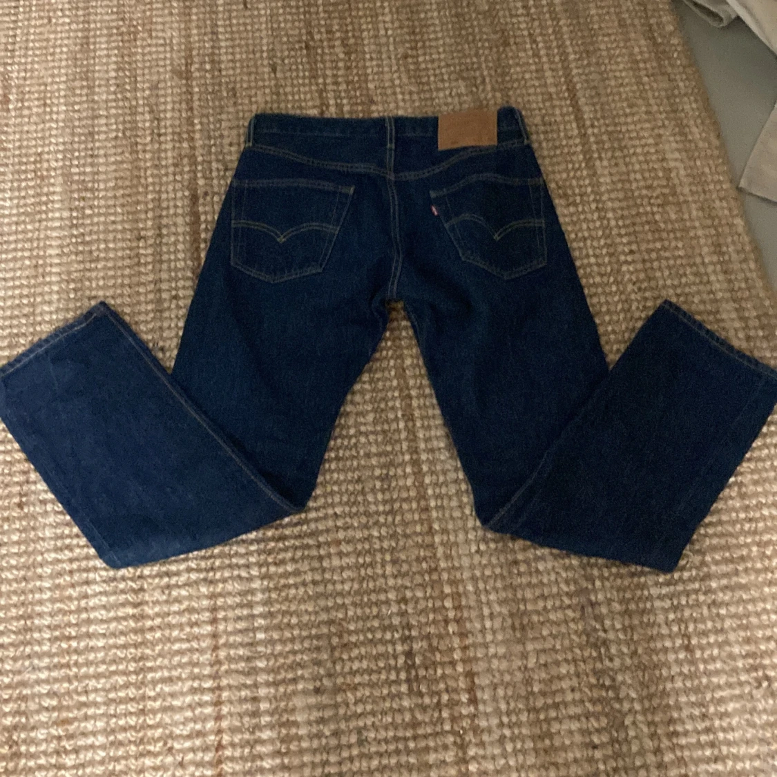 Klassiska Levi's 501 jeans i mörkblå denim med raka ben och snygga kontrastsömmar. Modellen har fem fickor och ikonisk läderpatch bak i midjan. Perfekta för dig som gillar tidlös stil och vill ha ett par jeans som alltid funkar.