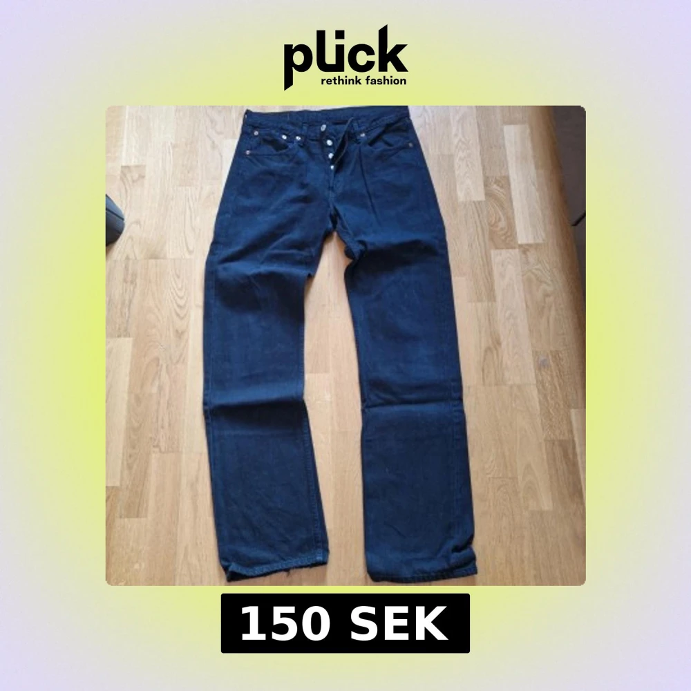 Klassiska svarta Levi's 501 jeans med raka ben och knappgylf. Ikonisk läderpatch bak i midjan. Perfekta för dig som gillar tidlös denimstil.