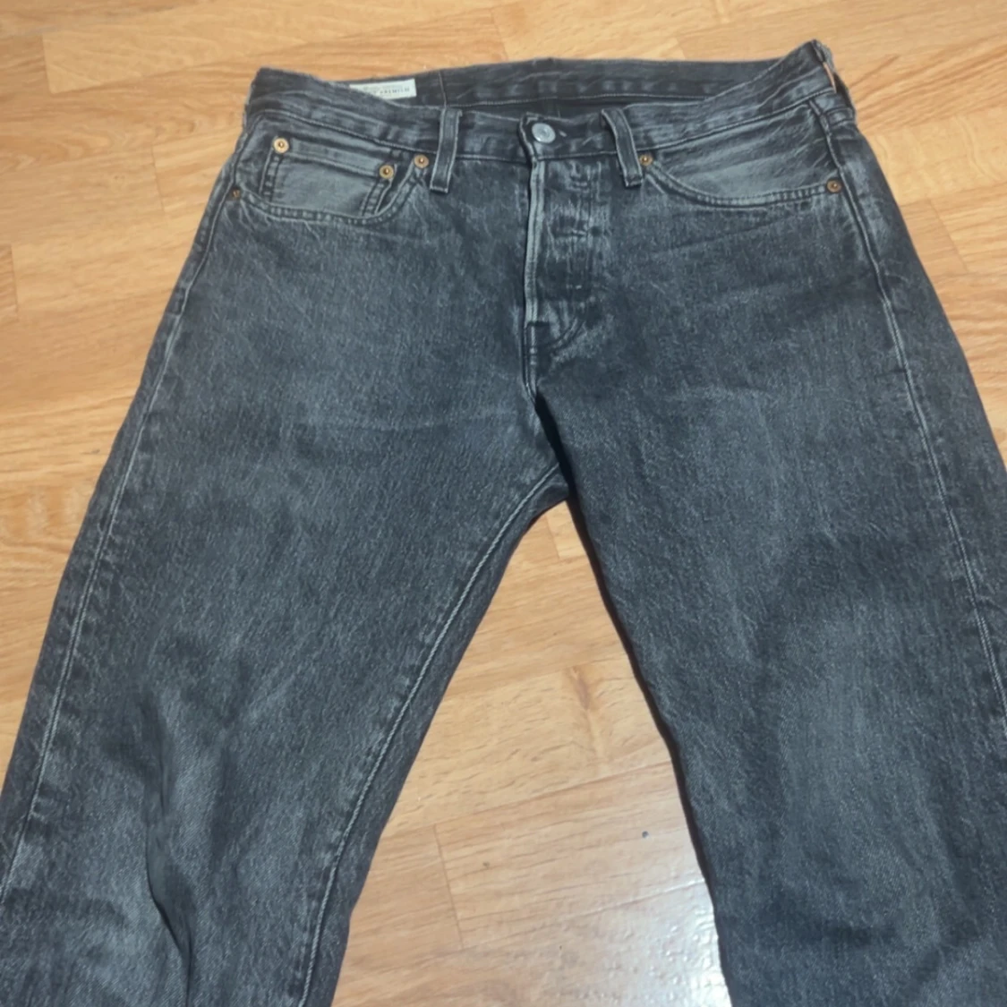 Klassiska svarta Levi's 501 jeans med rak passform och femficksdesign. Jeansen har en mörk tvätt, knappgylf och den ikoniska röda Levi's-taggen på bakfickan. Perfekta för en avslappnad och tidlös look.