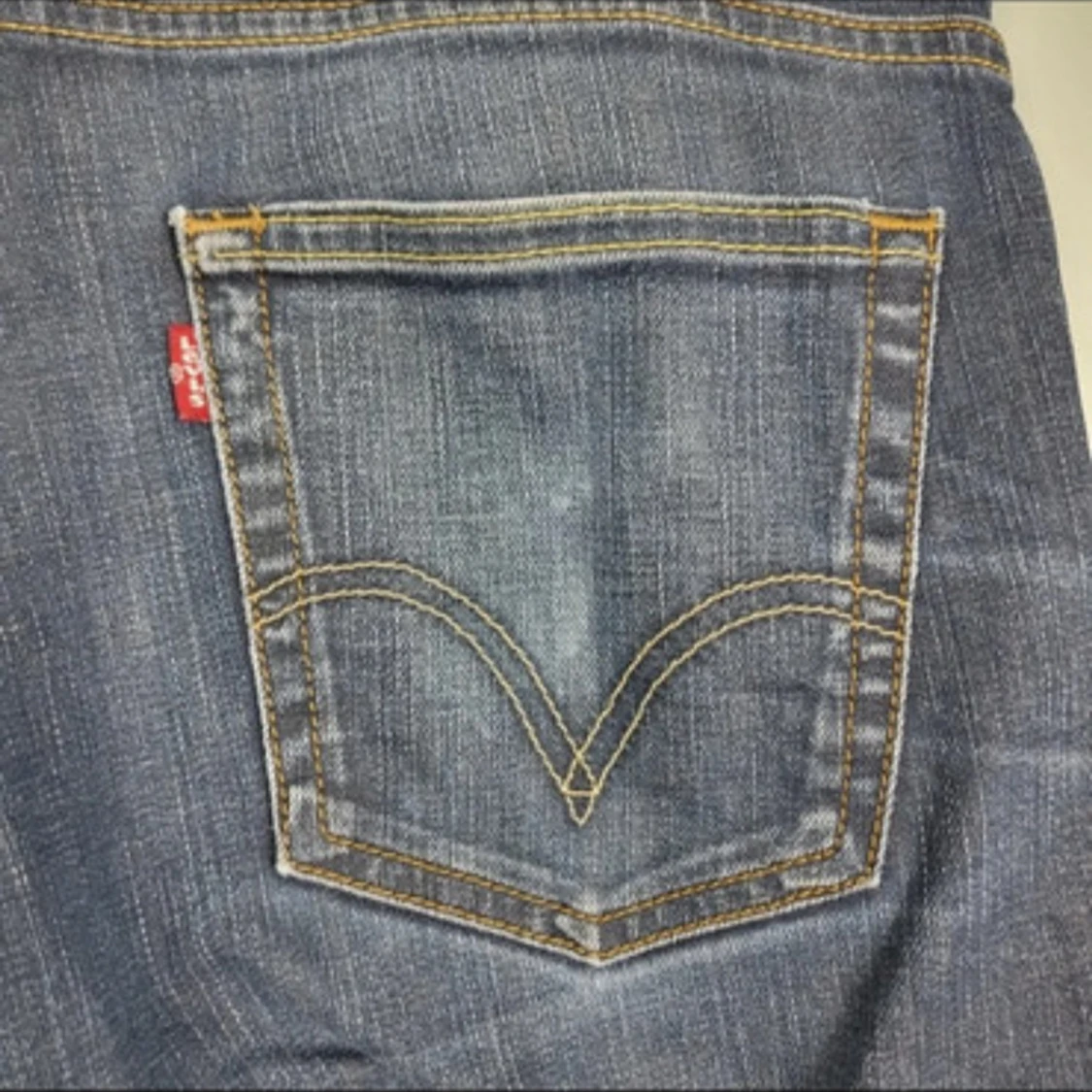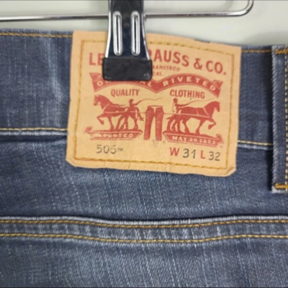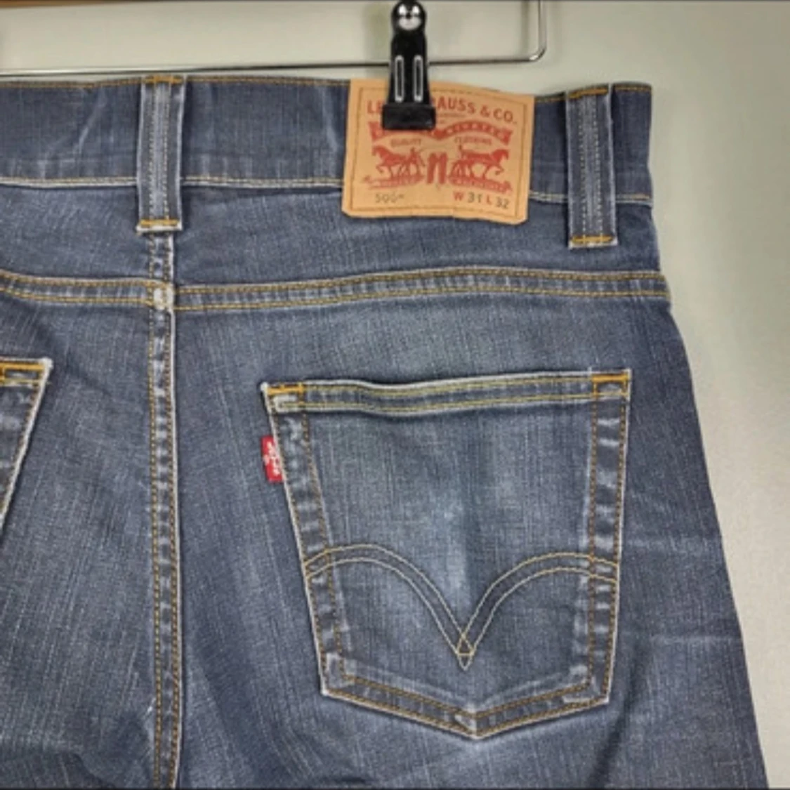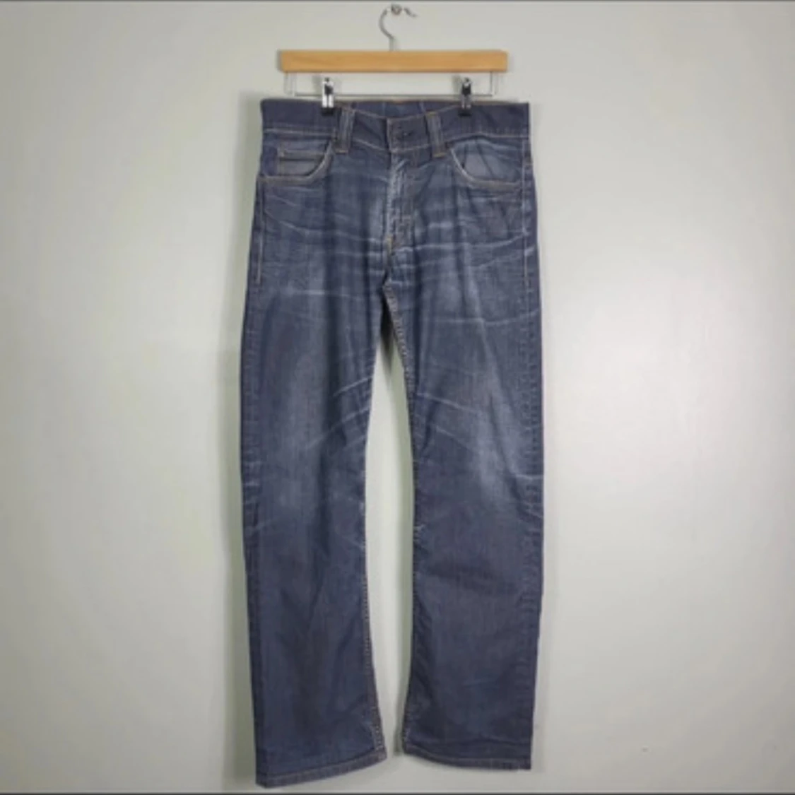 Klassiska blå Levi's 506 jeans med raka ben och snygga slitningar. Jeansen har fem fickor, gul kontrastsöm och den ikoniska röda Levi's-taggen på bakfickan. Tillverkade i slitstarkt denim för en tidlös look.
