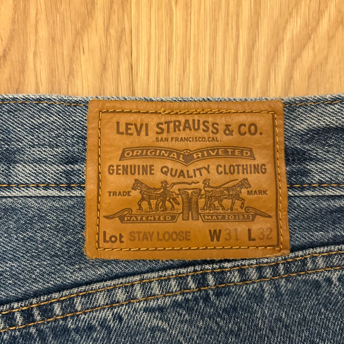 Säljer ett par klassiska Levi's Stay Loose jeans i blå denim. Modellen har en loose passform med raka ben. Det är en liten sliten detalj på ena benet, vet inte hur den har tillkommit men man ser inte det när man använder de. Perfekta för en avslappnad streetstil.