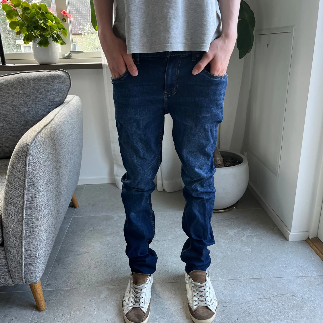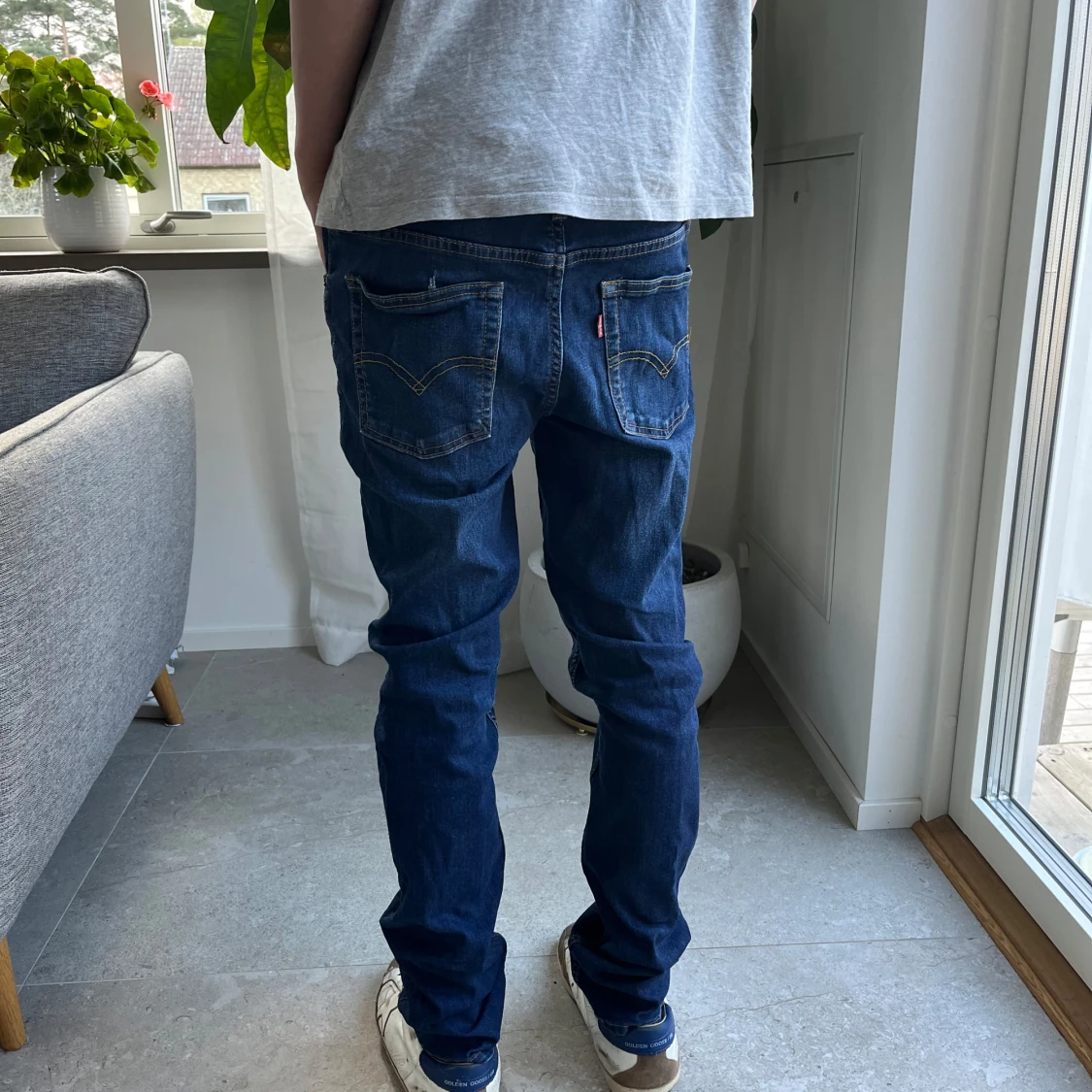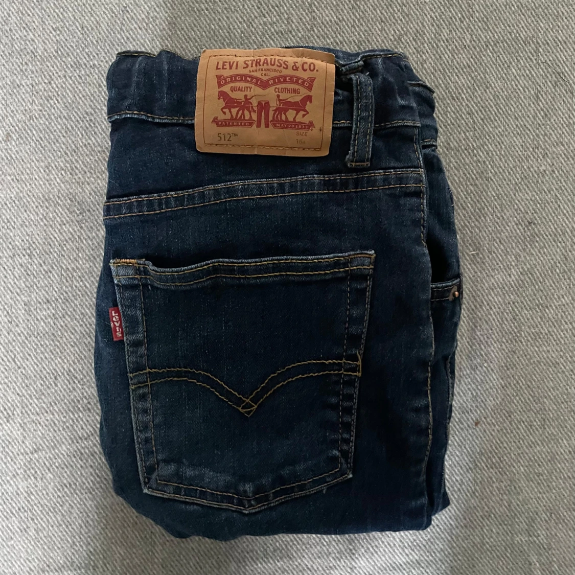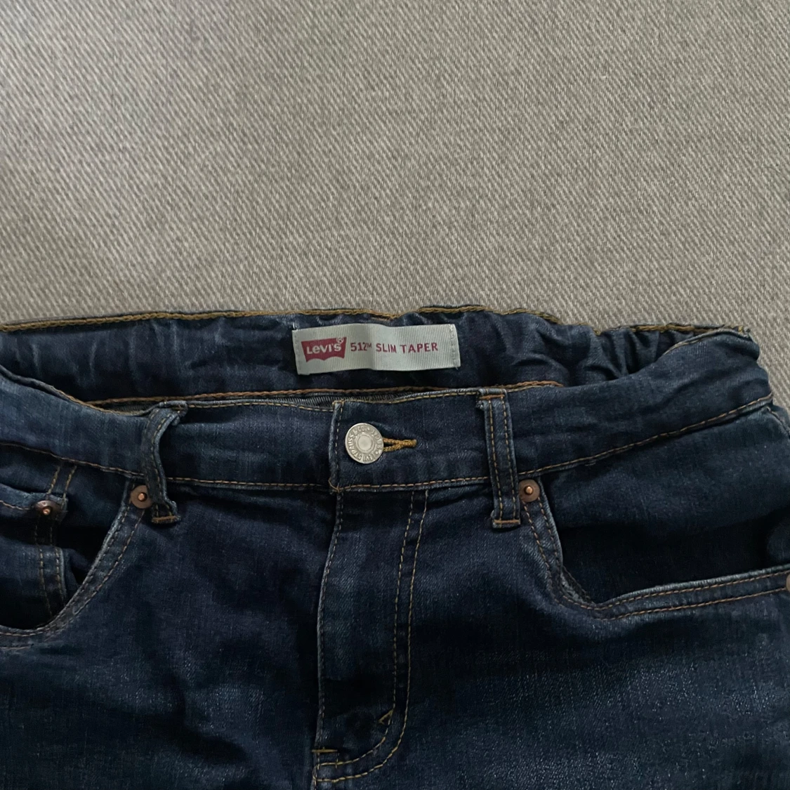 Säljer ett par Levi's 512 Slim Taper jeans i mörkblå denim. Jeansen har klassisk femficksdesign, dragkedjegylf och smal passform som smalnar av nedtill. Perfekta för dig som gillar en modern och stilren look.