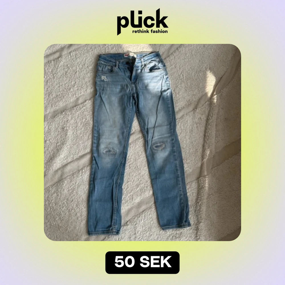 Säljer ett par snygga Levi's 512 Slim Taper jeans i Storlek 12A. De har en cool, sliten look med slitningar vid knäna och en bekväm passform. Perfekta för en avslappnad stil!