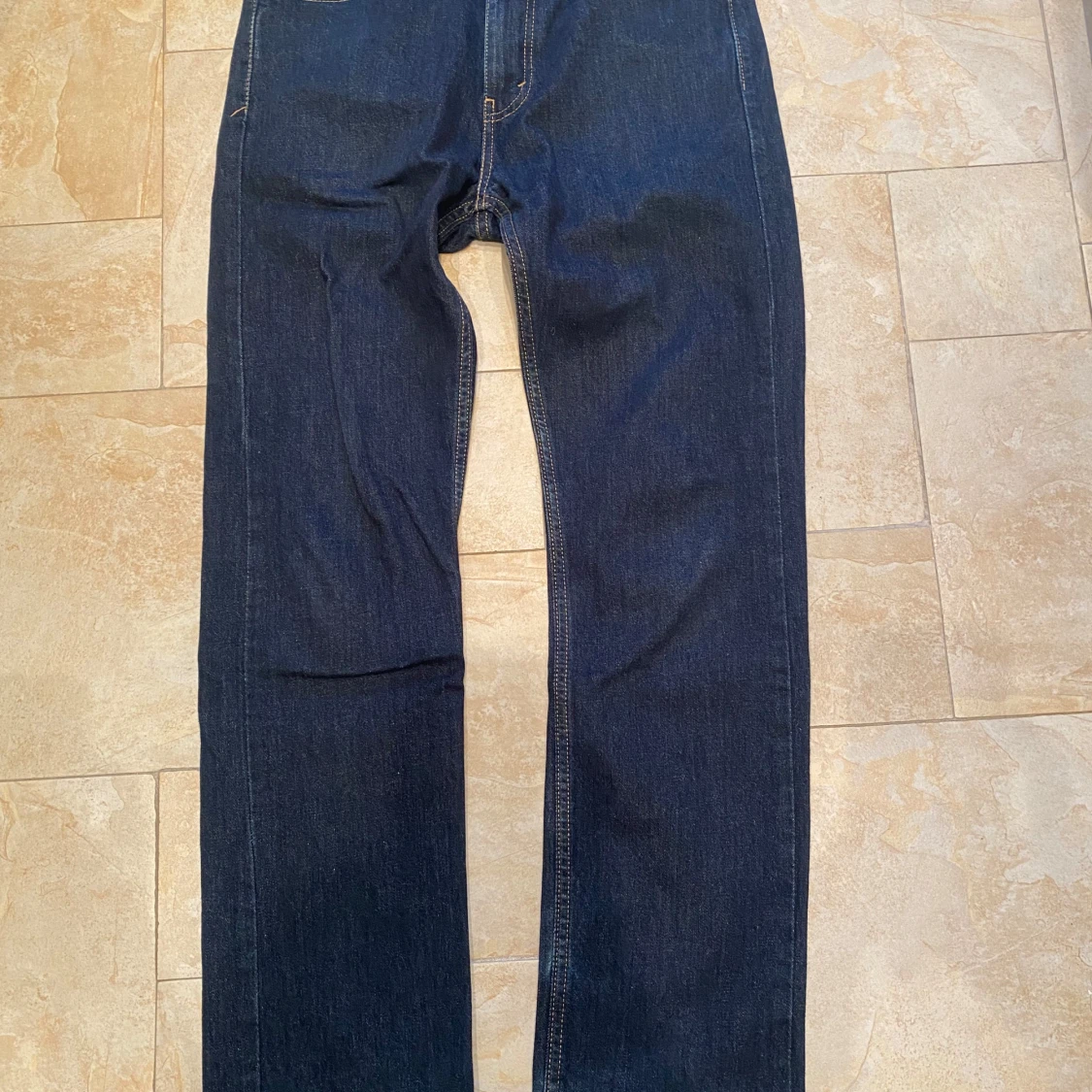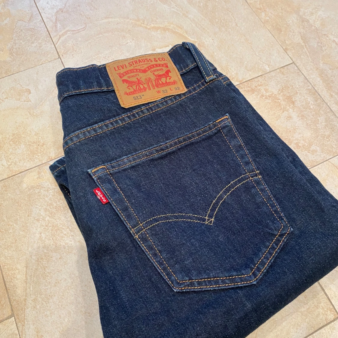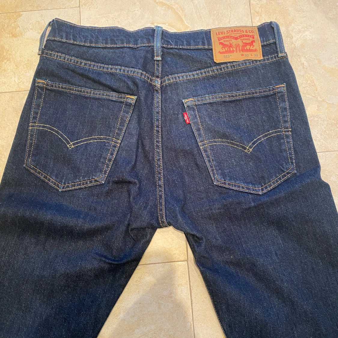 Mörkblå Levi's 513 jeans med klassisk femficksdesign och raka ben. Jeansen är i väldigt bra skick 💯 Hör av er om ni har några frågor!