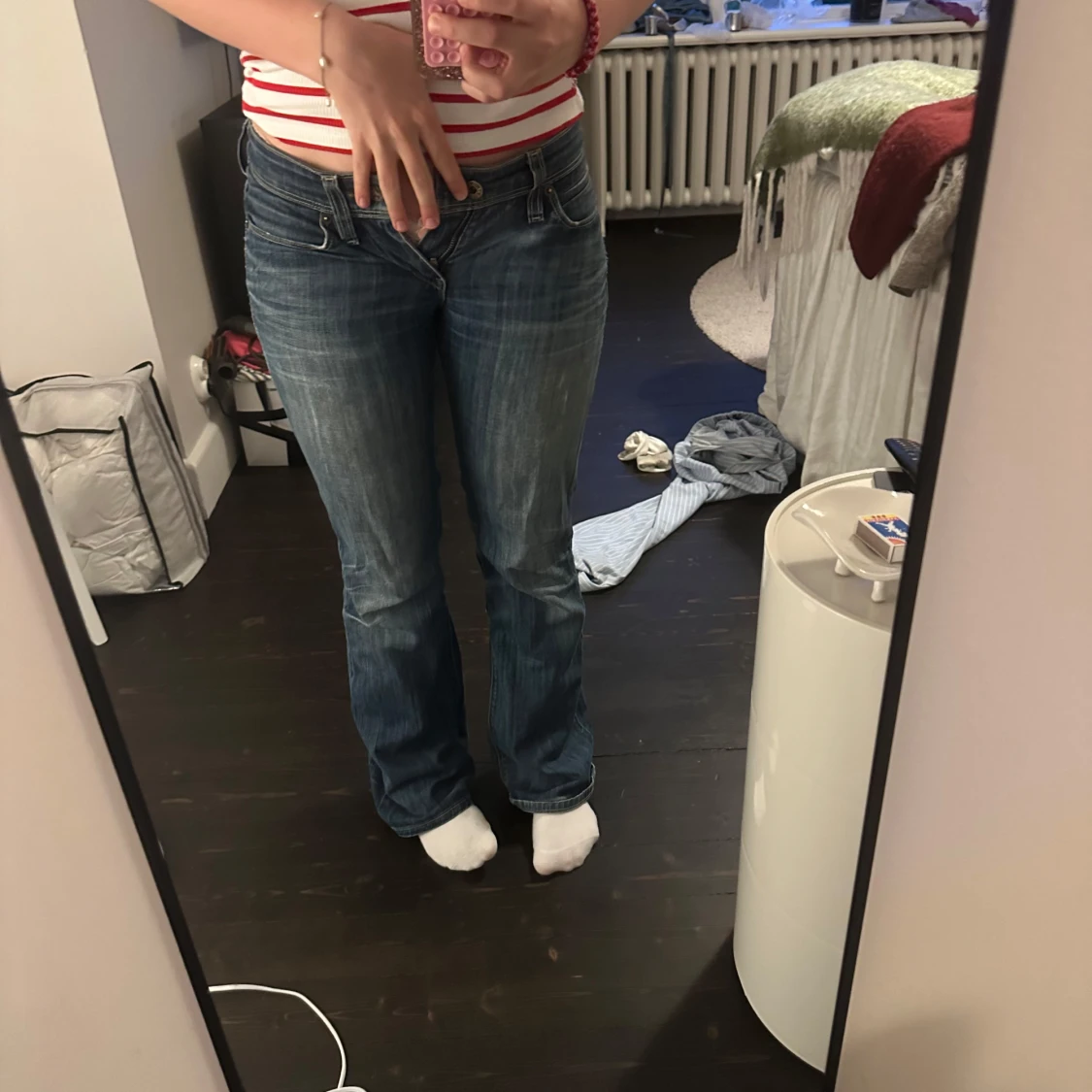 Säljer ett par klassiska Levi's 572 Bootcut jeans i blå denim. Byxorna har ett litet slitnings hål på rumpan men det syns inte som man ser på bilden. säljer då de blivit för små🌸🌸