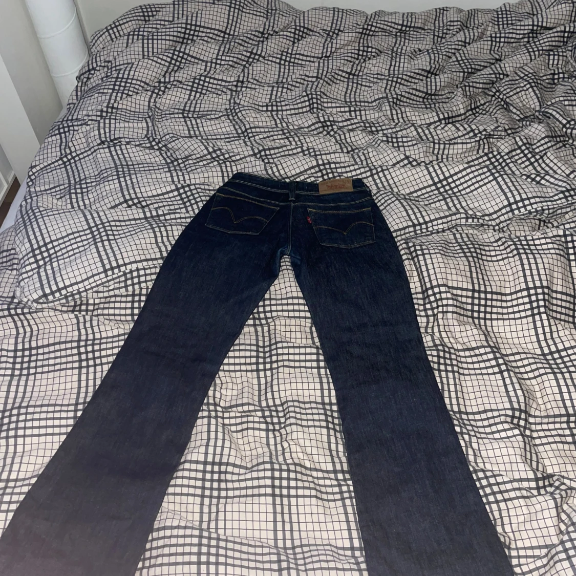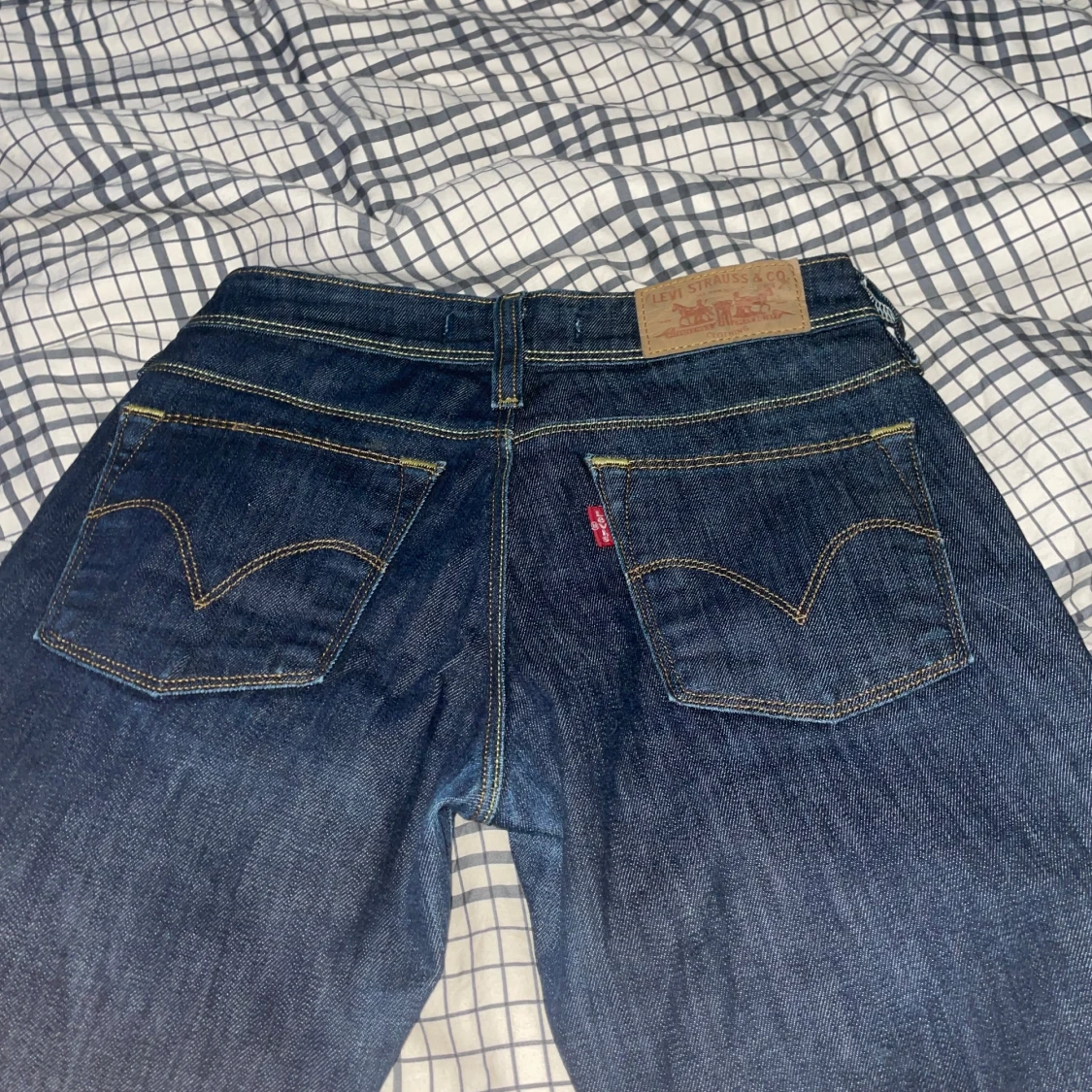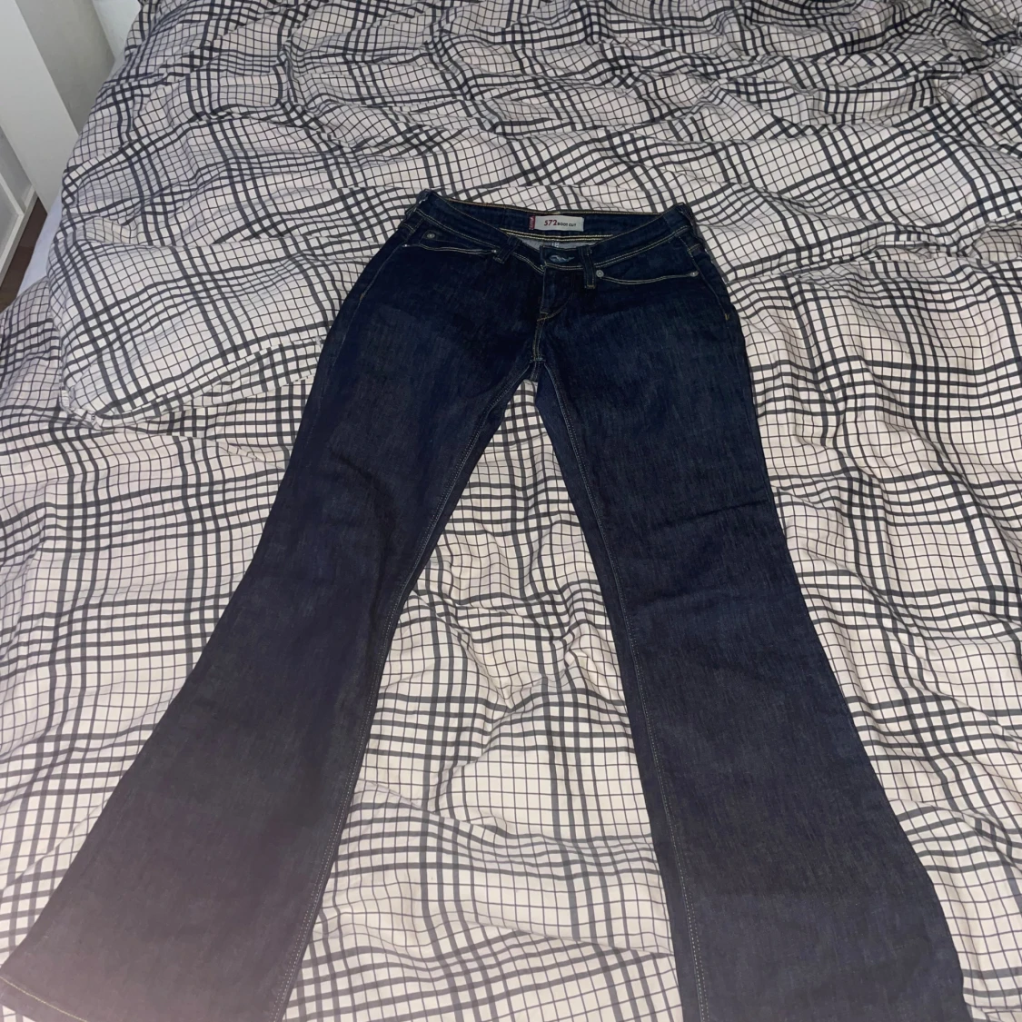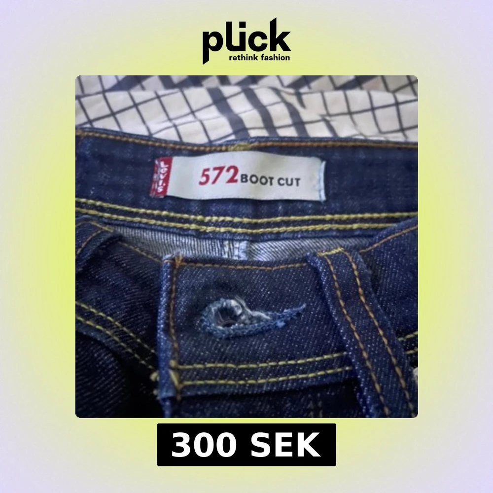 Säljer ett par Levi's 572 Bootcut jeans i mörkblå tvätt. Klassisk femficksmodell med kontrastsömmar och bootcut-ben som ger en snygg siluett. Jeansen har Levi's patch bak och röd etikett vid fickan. Perfekt för dig som gillar retrovibbar och tidlös denim.