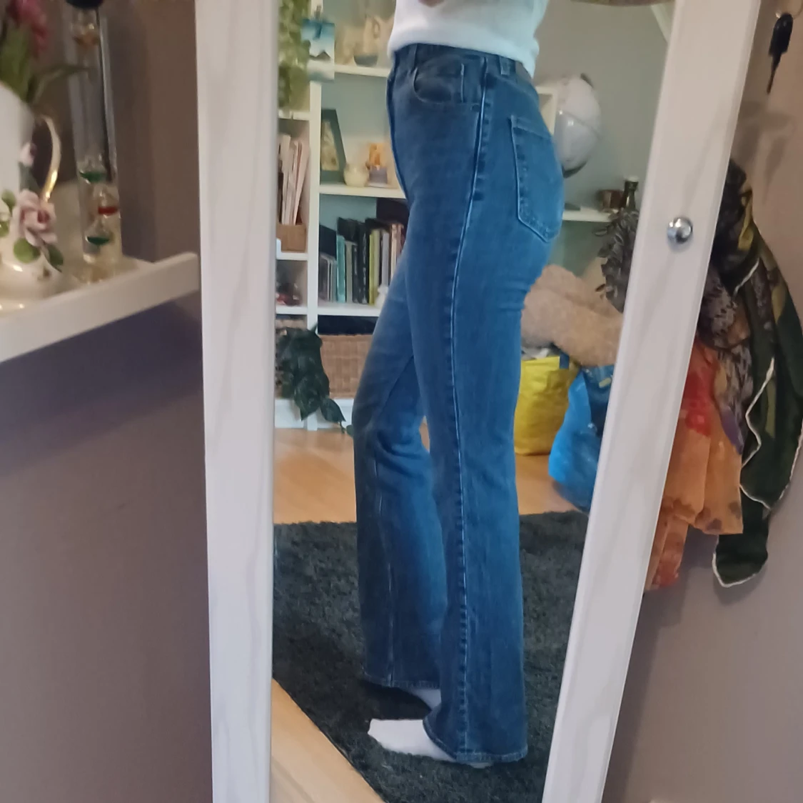 Säljer ett par Levi's Premium 70s High Flare jeans i klassisk blå denim💎🐳 Hög midja och utsvängda ben ger en snygg retro vibe. Jeansen passar perfekt för dig som är lång (Jag är 178 cm), innerbenslängd är 86 cm. Det är använda och har en liten fläck långt ner på ena benet (sista bilden) men är annars i väldigt bra skick❣️ Tror att orginalpris var runt 1300 kr. Det är bara att skriva om man har frågor!😊💖