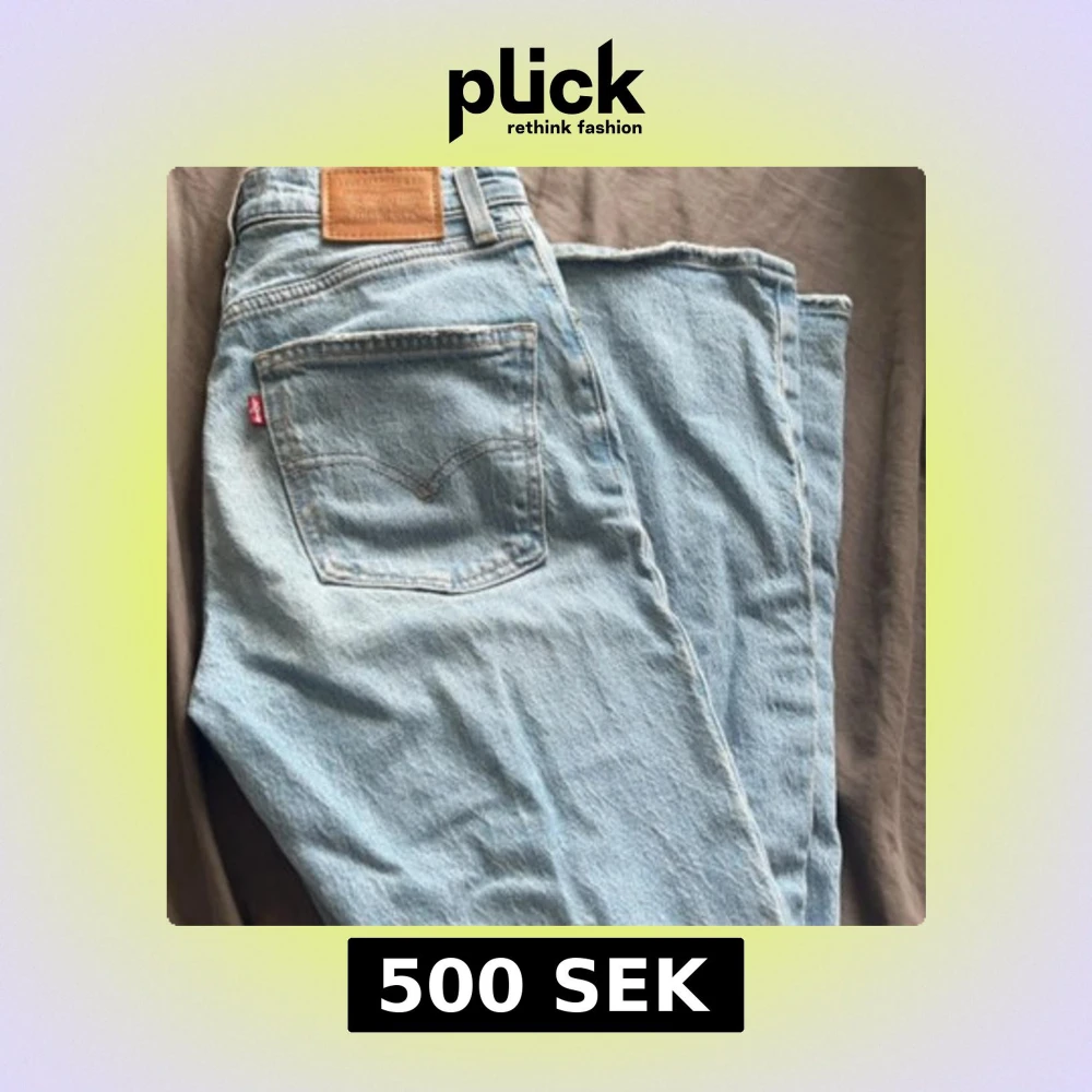 Säljer ett par snygga ljusblå Levi's 70s High Flare jeans. De har en hög midja och en klassisk femficksdesign. Perfekta för en retro look med en modern twist.