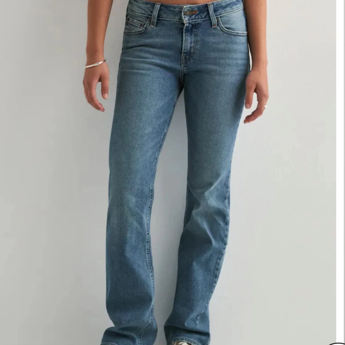 Säljer ett par Levi's jeans i modell superlow boot i mellanblå tvätt. Jeansen har bootcut passform och är i storlek 25/30, köpta för 950 och har används fåtal gånger