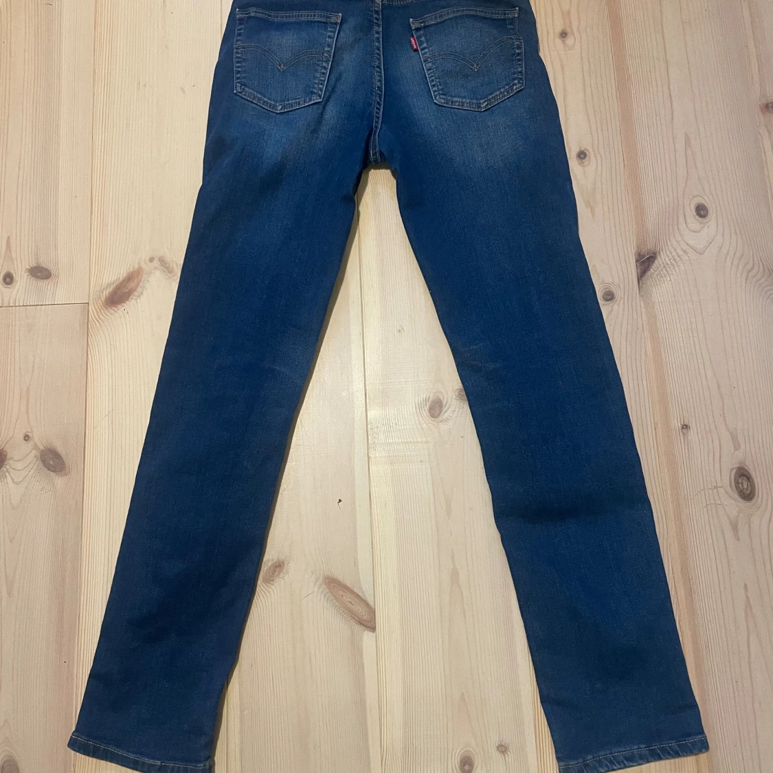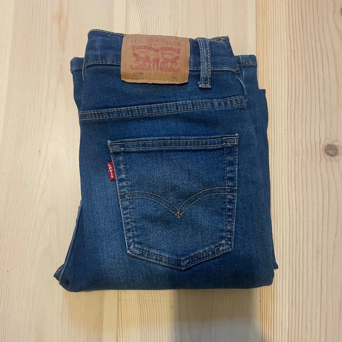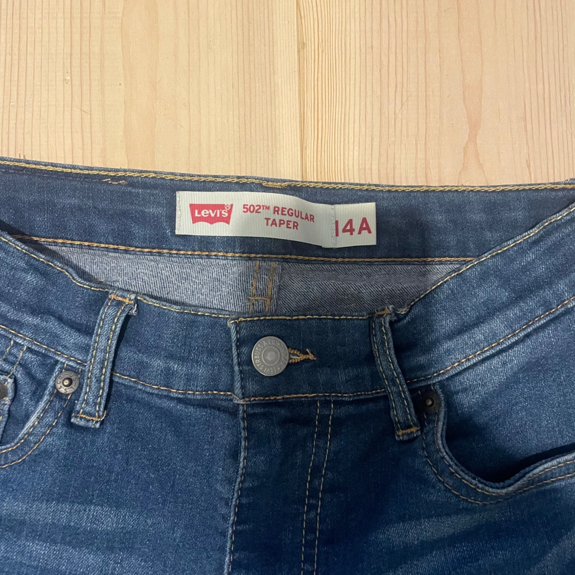 Snygga blå Levi's 502 Regular Taper jeans med klassisk femficksdesign och röd Levi's-tag på bakfickan. Jeansen har en avsmalnande passform och normal midja, tillverkade i mjukt denim med slitningar för en cool look. Hör av dig vid frågor!