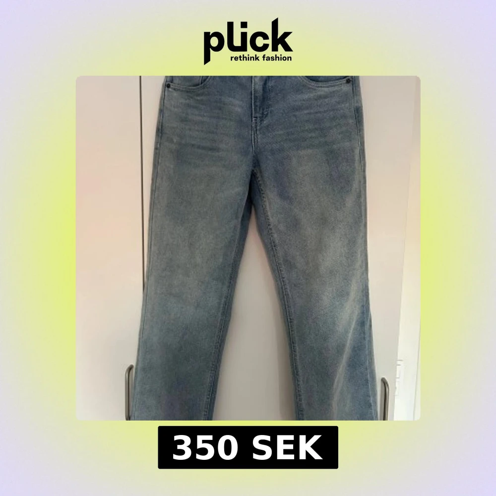 Snygga ljusblå jeansbyxor med en klassisk straight passform. De har en midwaist design och är perfekta för en avslappnad stil. Byxorna har fem fickor och en dragkedja framtill. Lite större i storleken. Personen på bilden är 170 cm.
