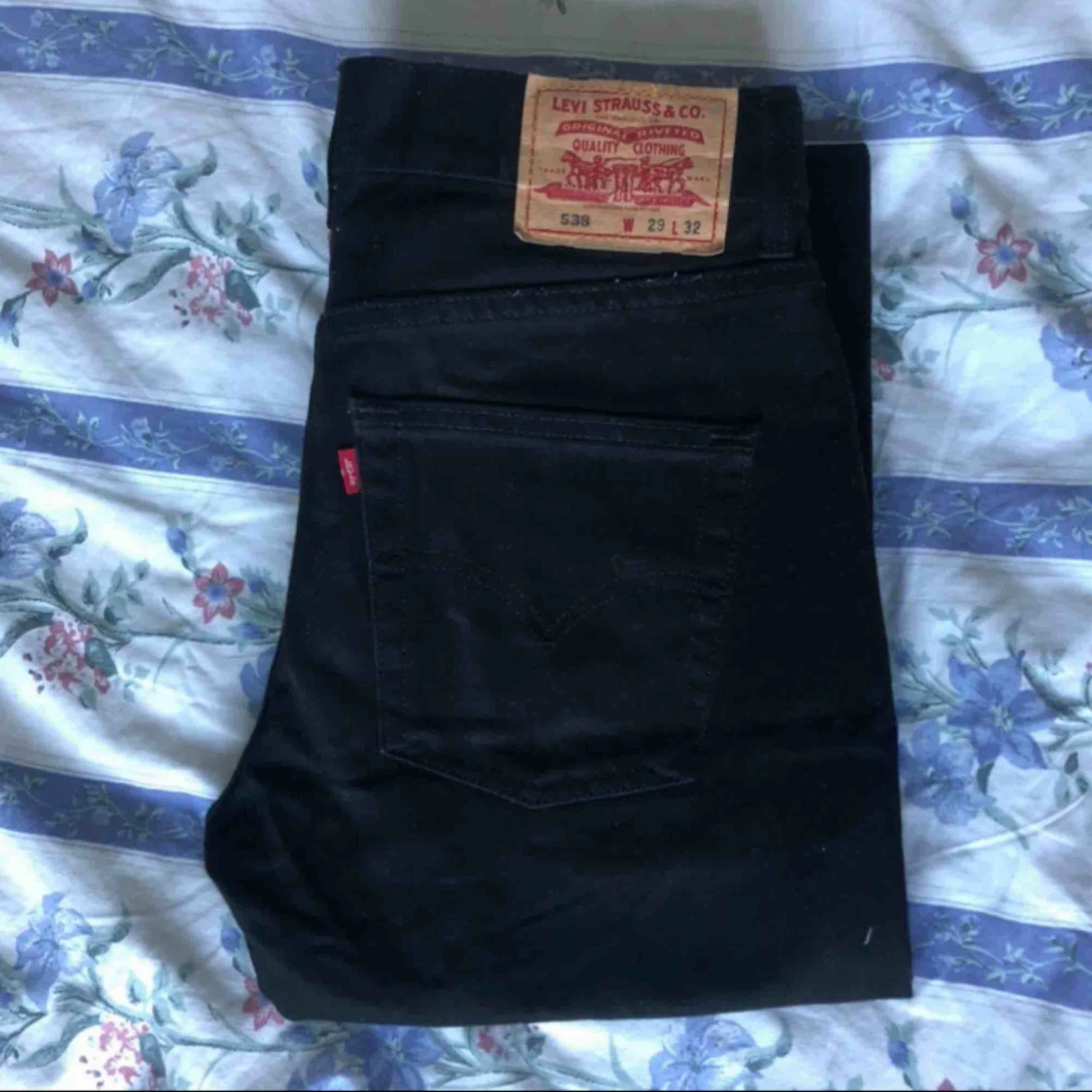 ett par shit snygga svarta levis jeans! modellen är 538 och storleken är 29W 32L 💘 aldrig använda 😋 frakt ingår inte