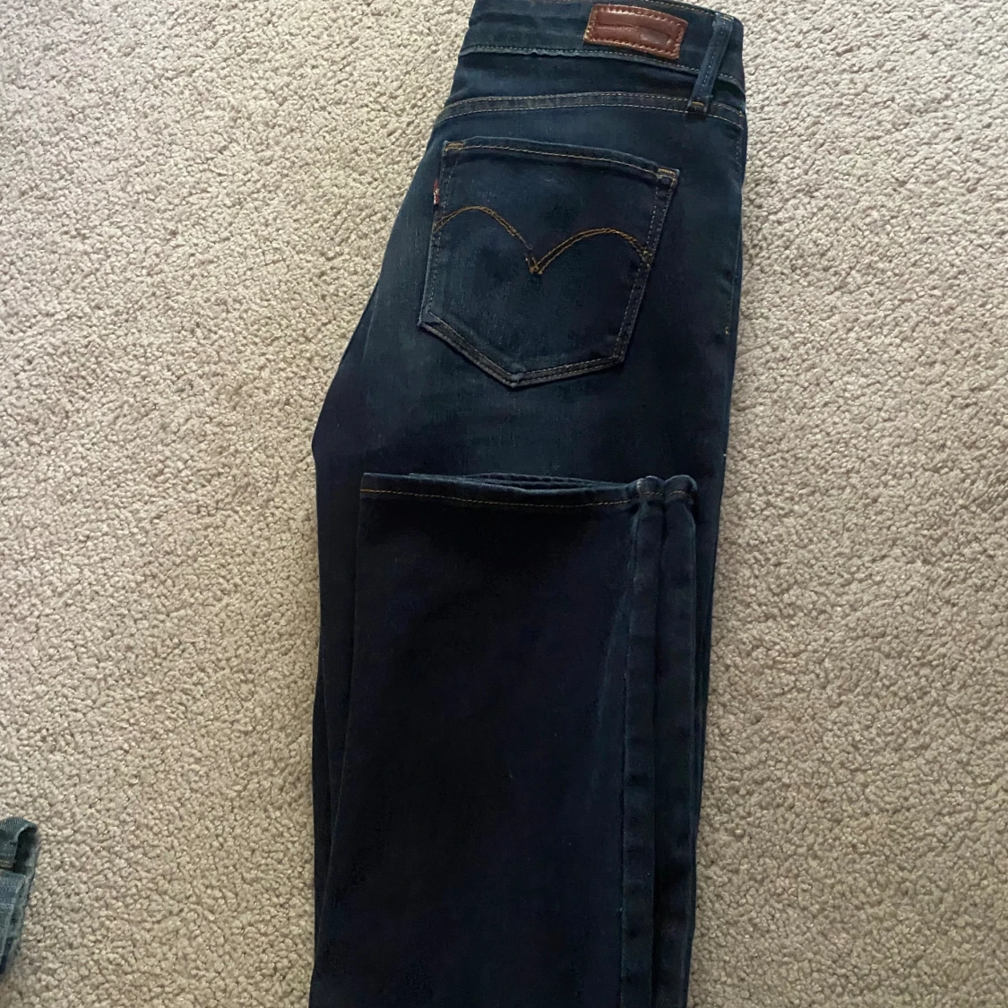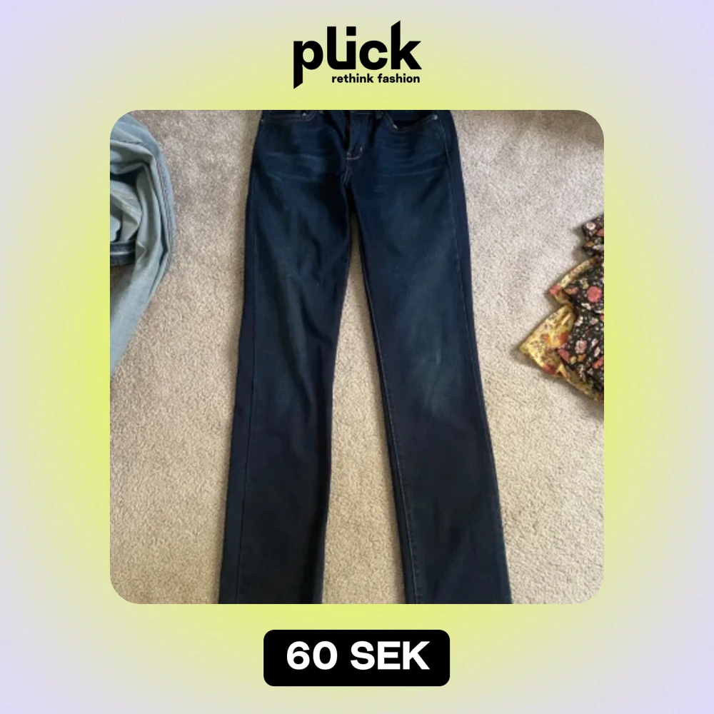 Super snygga utsvänga lågmidjade jeans i en super cool blå färg med snygga detaljer och är i ett mycket bra sick❤️
