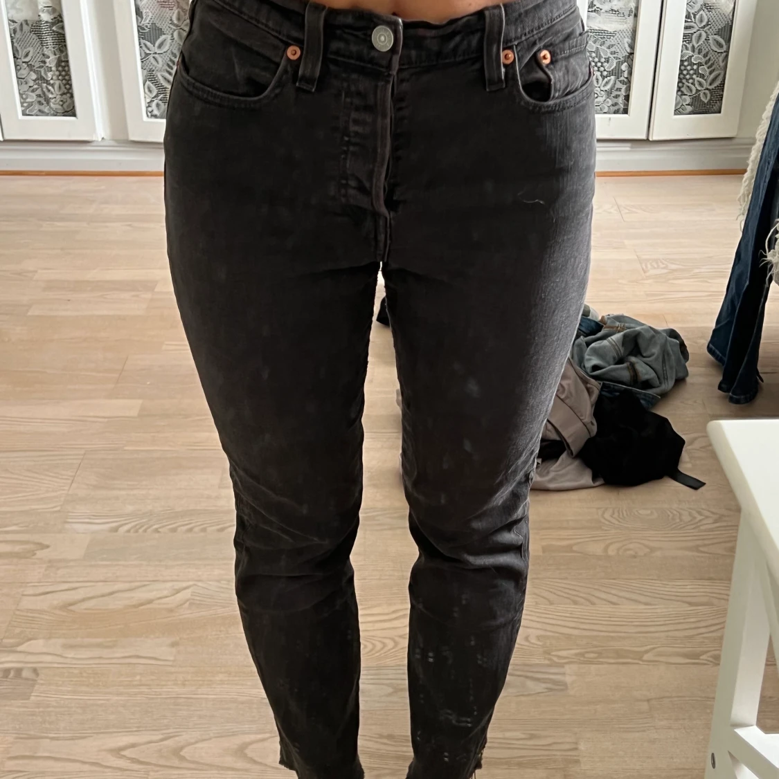Gråa jeans från Levi’s i storlek W26. Säljaren står för fraktkostnaden. Kolla gärna in mina andra annonser - rensar garderoben!💓