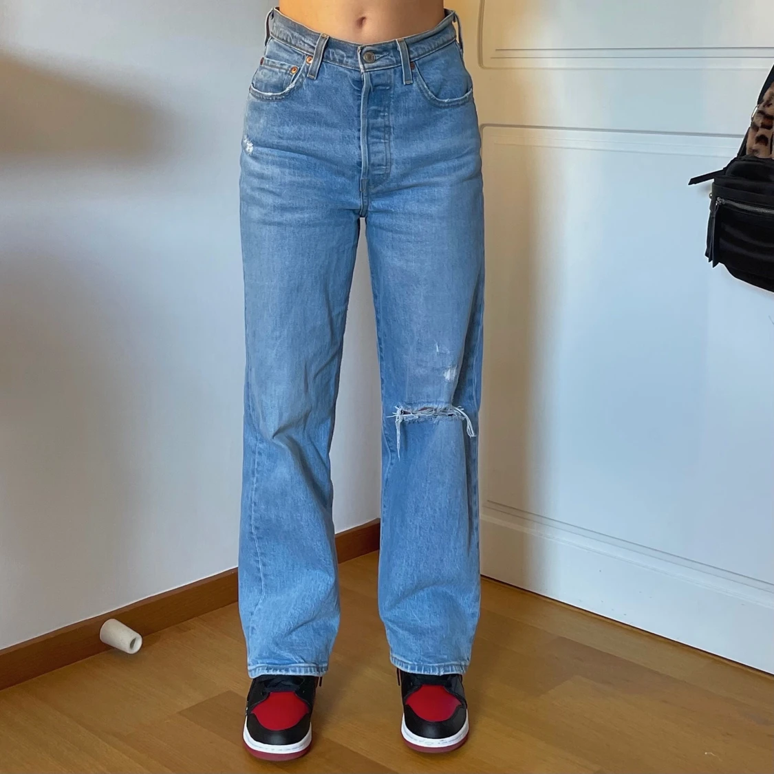Säljer nu dessa Levis jeans då dom inte kommer till användning och behöver en ny ägare! Knappt använda och sitter supersnyggt! Om fler är intresserade blir det budgivningen, buda bara om du är säker på att du vill köpa!