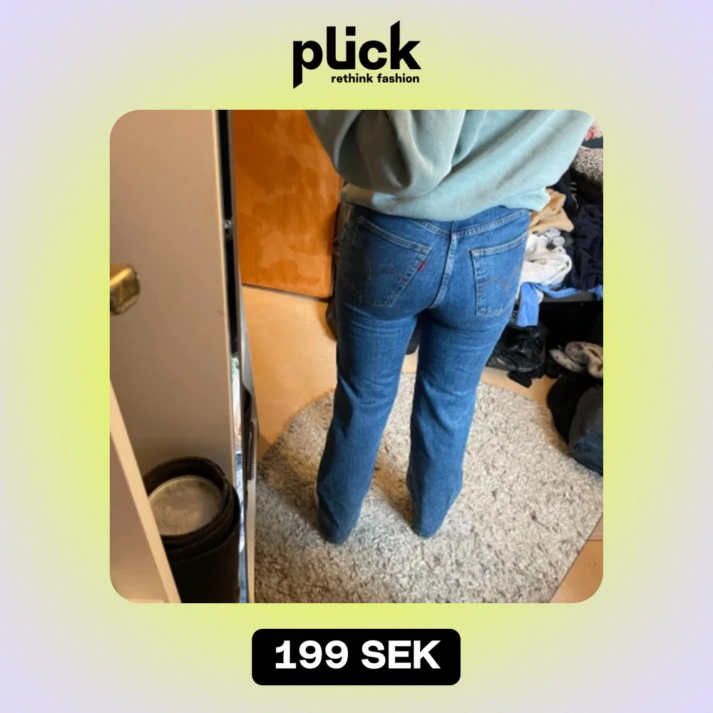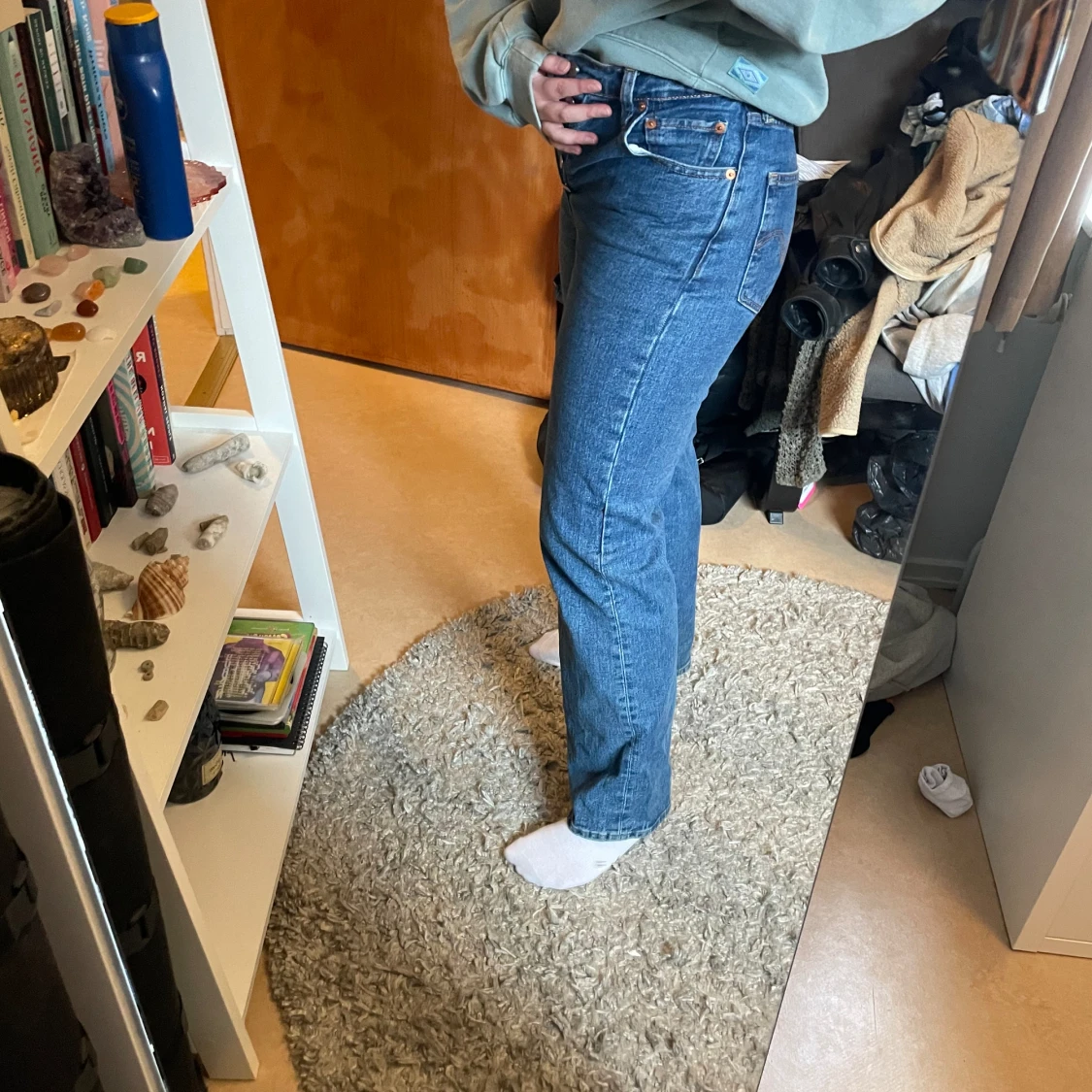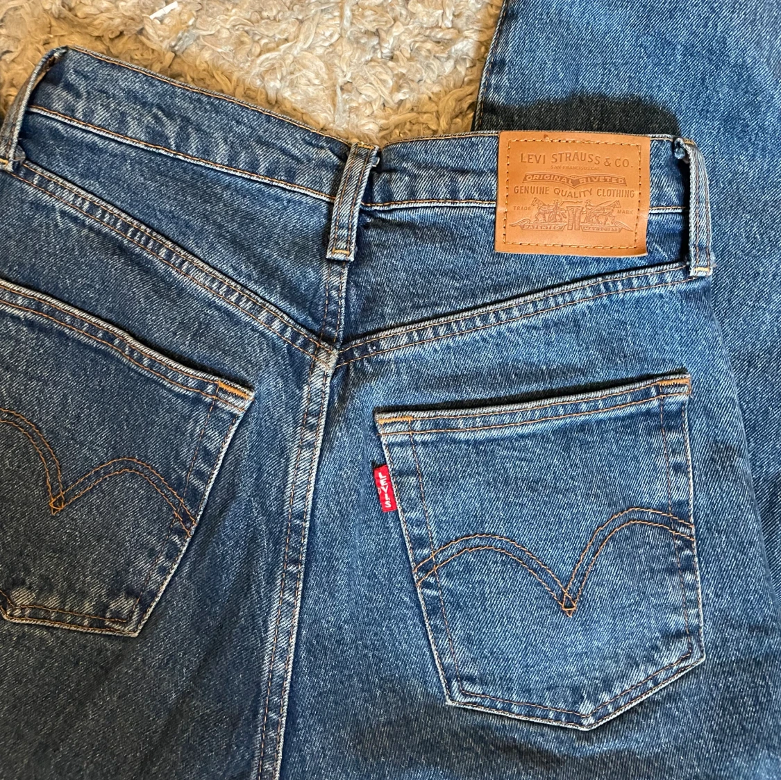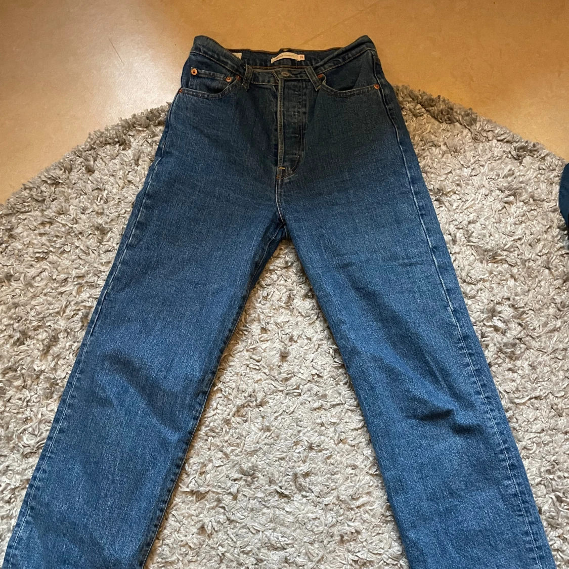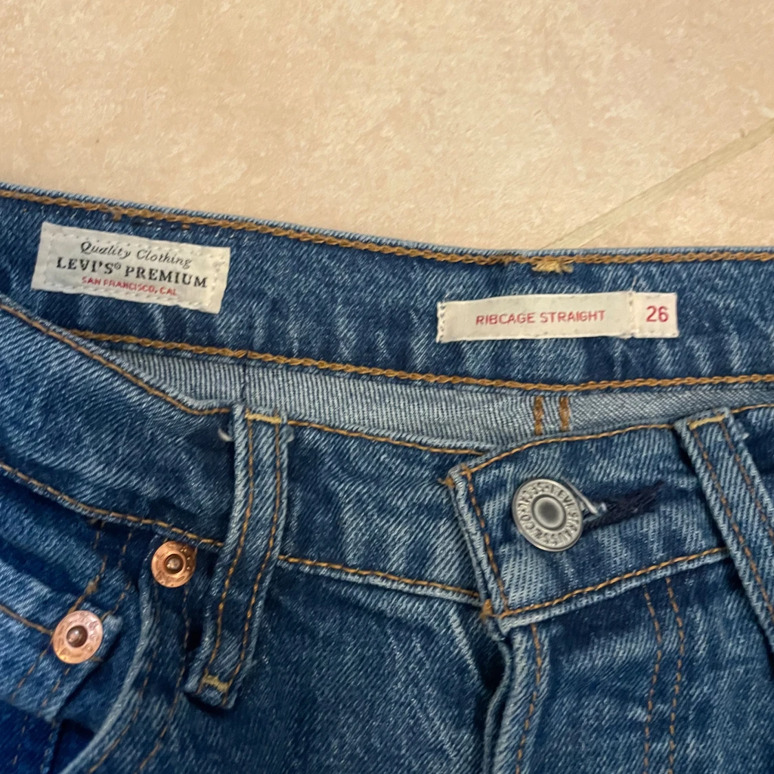 Levi's jeans, ribcage straight. Storlek W26. Passar S. Knappar istället för kedja. Knapps använda. Passar mig inte längre. Passar längd 162 cm.