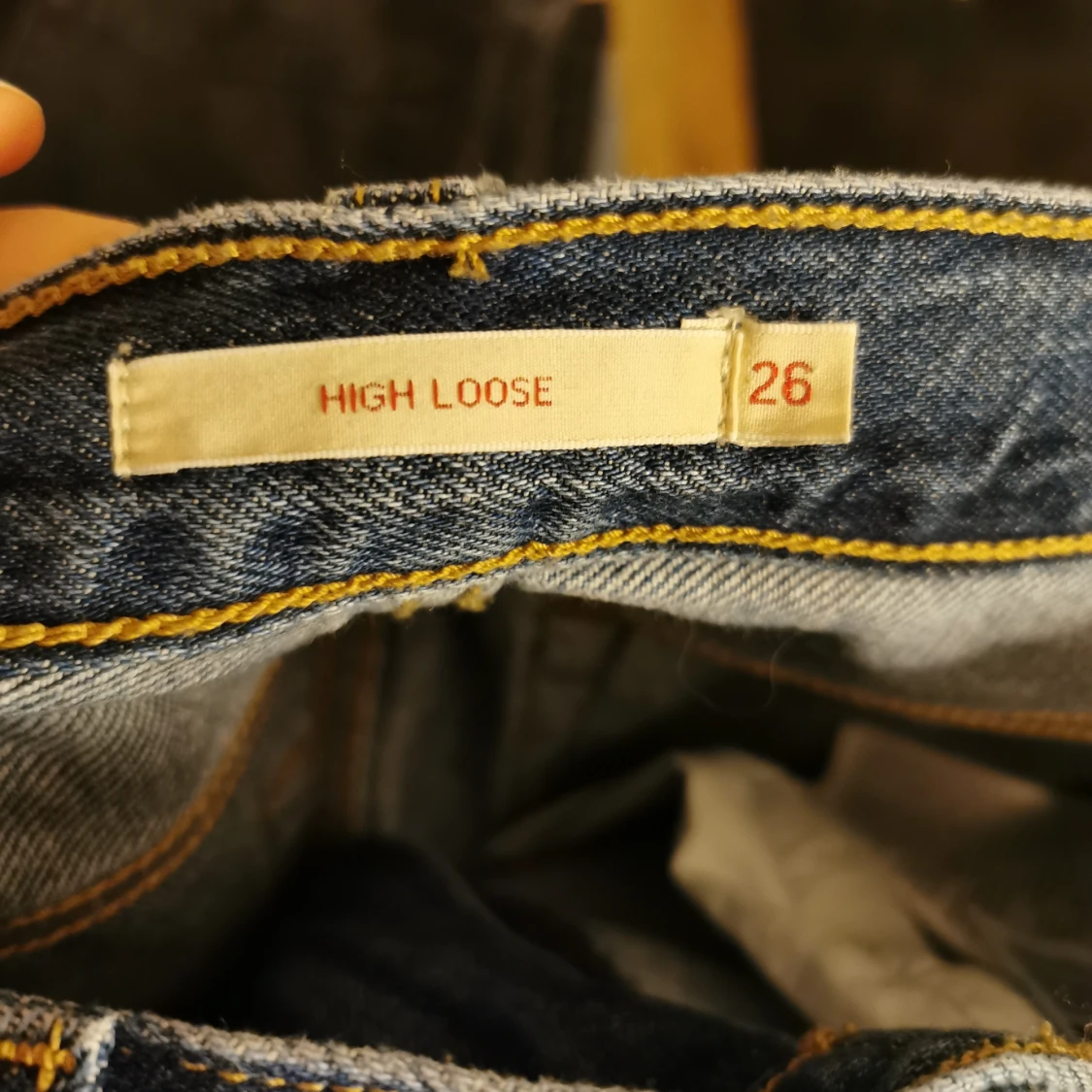 "high loose" jeans från Levis som smiter åt på de rätta ställena i superfint nyskick. Storlek 26/31. Skickas mot frakt